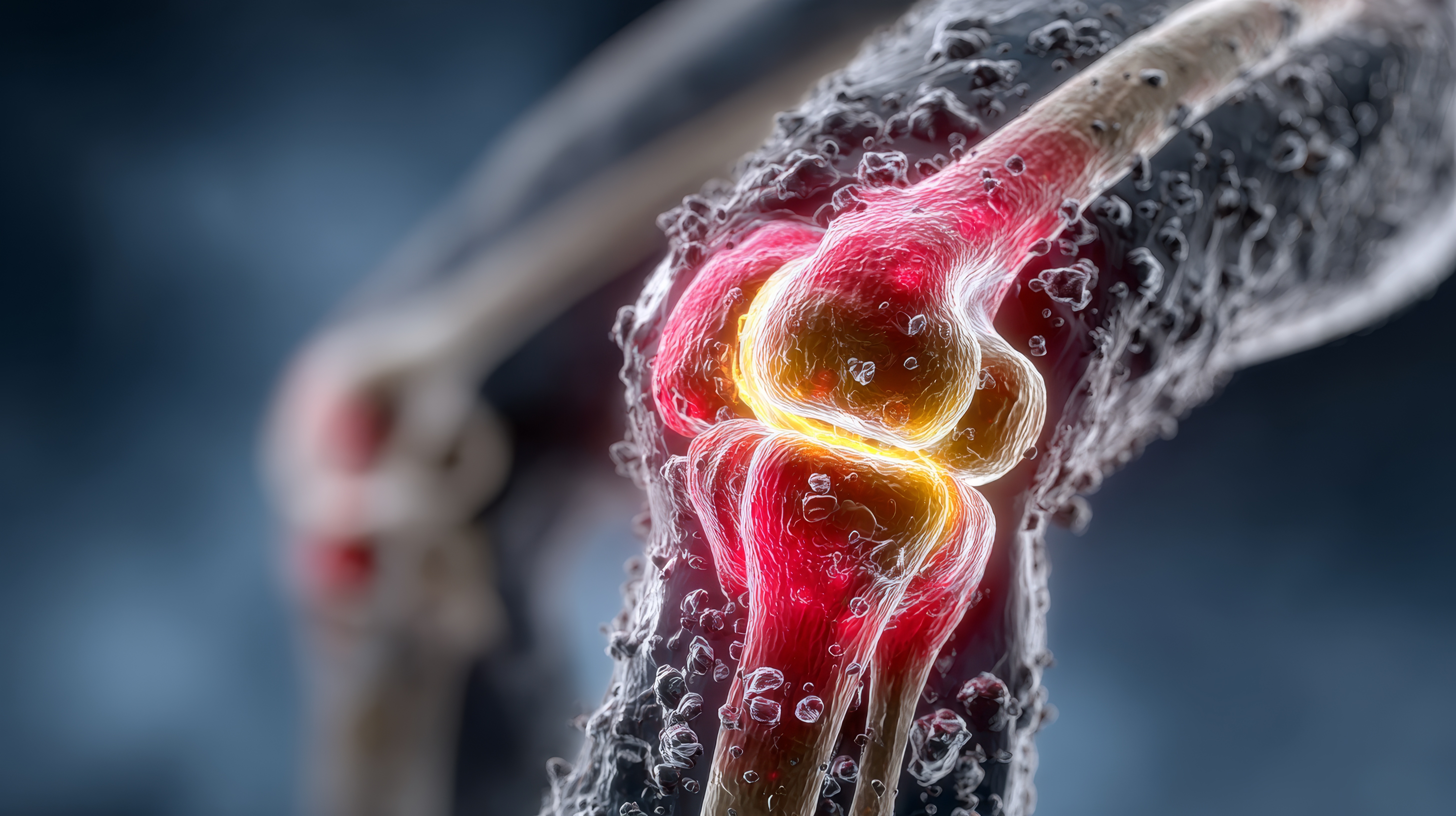 鲜艳蓝色膝关节插图突出疼痛损伤区域