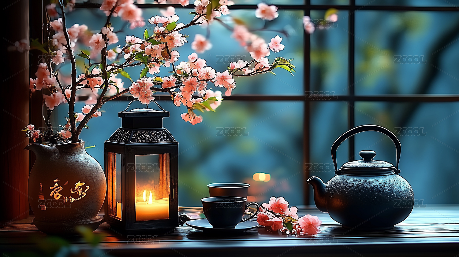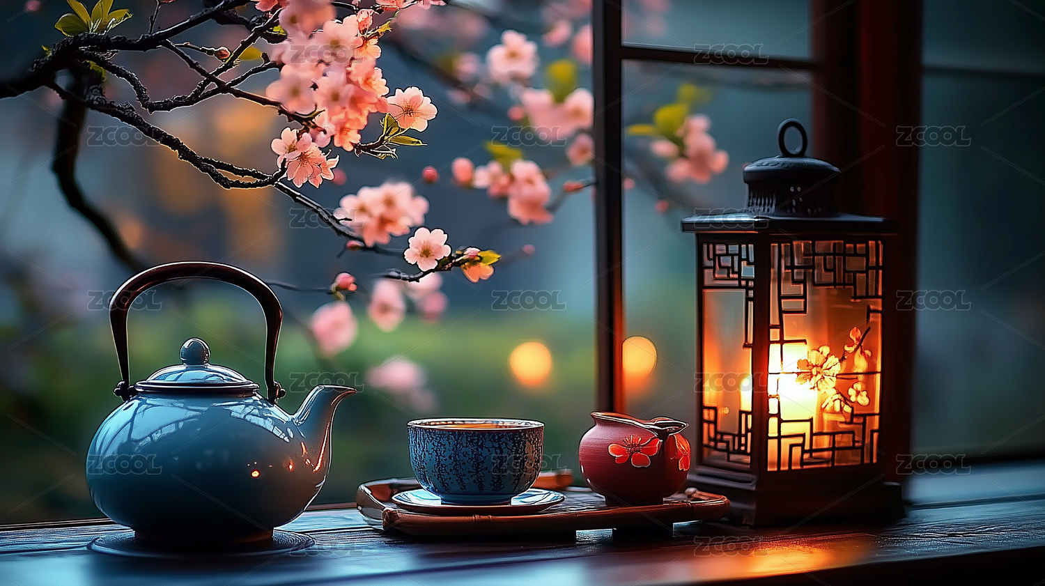 室内,简约,优雅,两,杯,茶,桌子,米色,大理石,地板