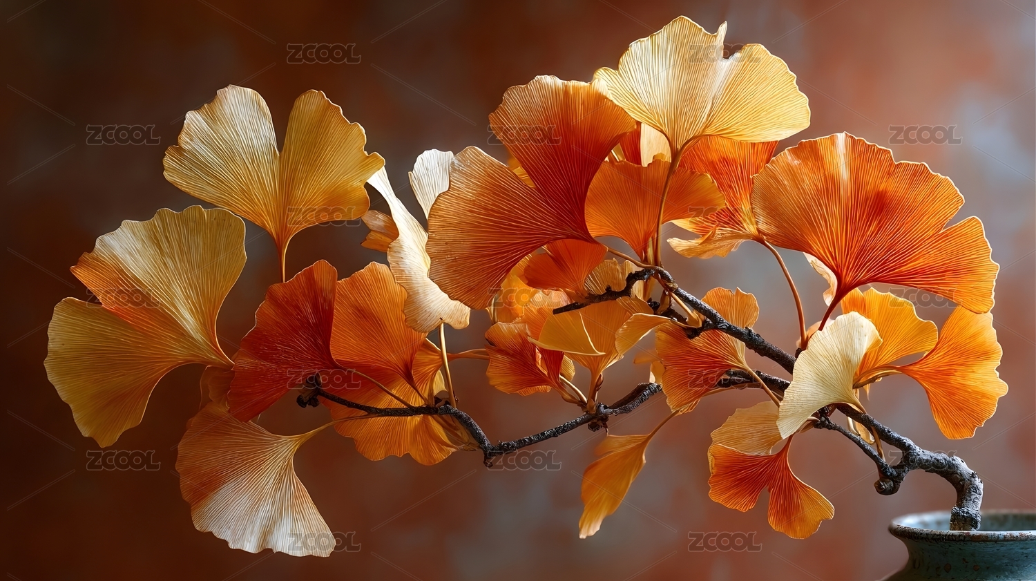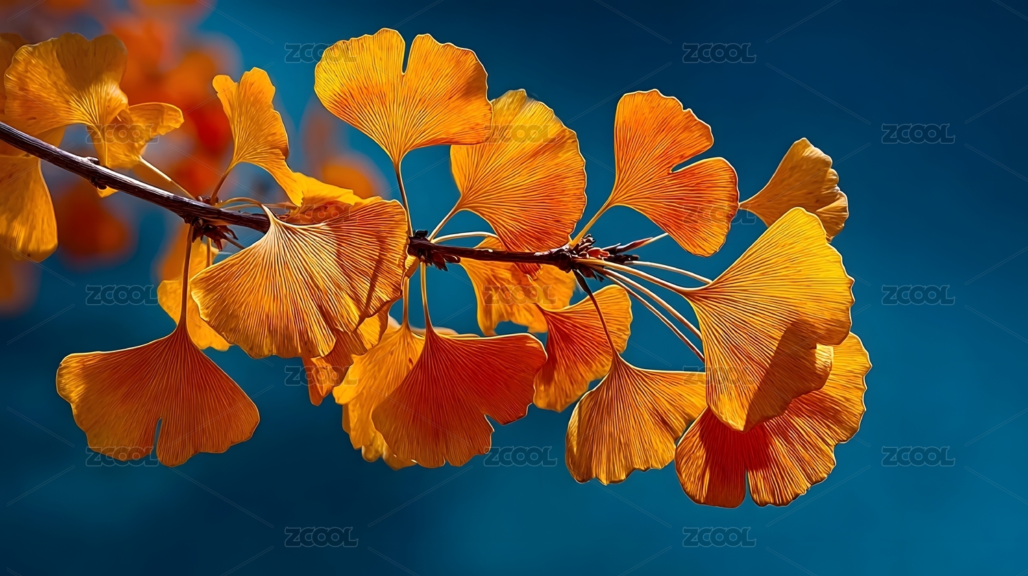 背景,红色,黄色,自然,植物,叶子,叶脉,纹理,叶形,银杏