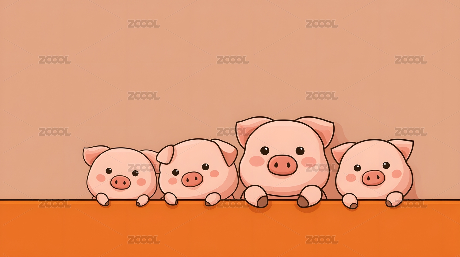 萌系小猪家族温馨墙角
