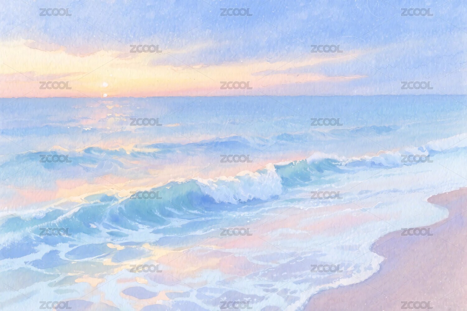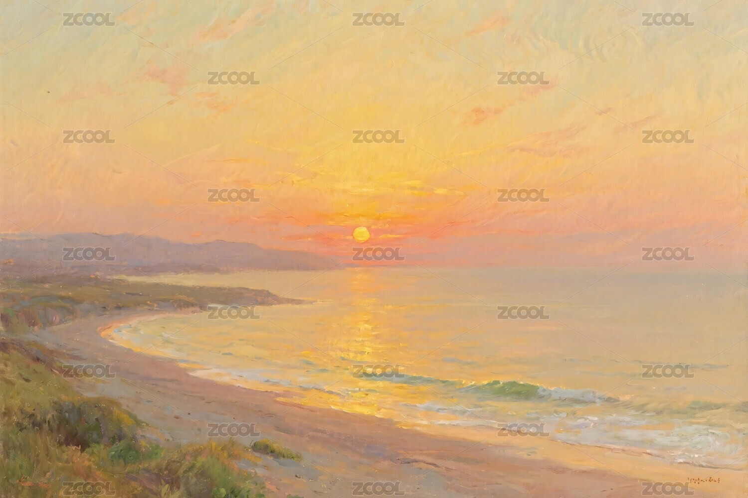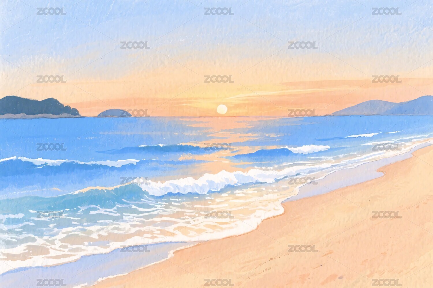 海滩,海洋,日落,沙滩,海浪,风景,自然,插画,日落风景,沙滩美景