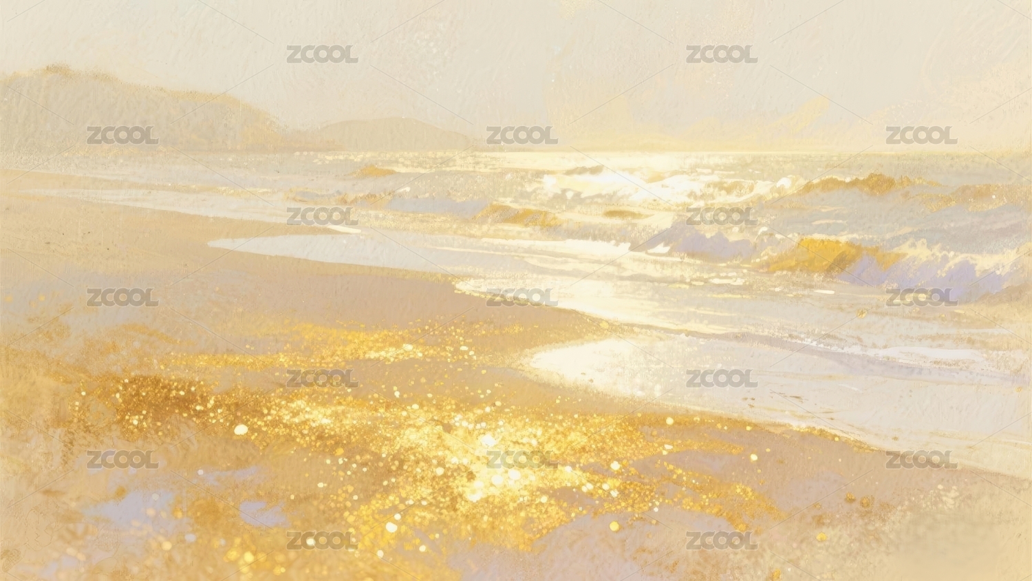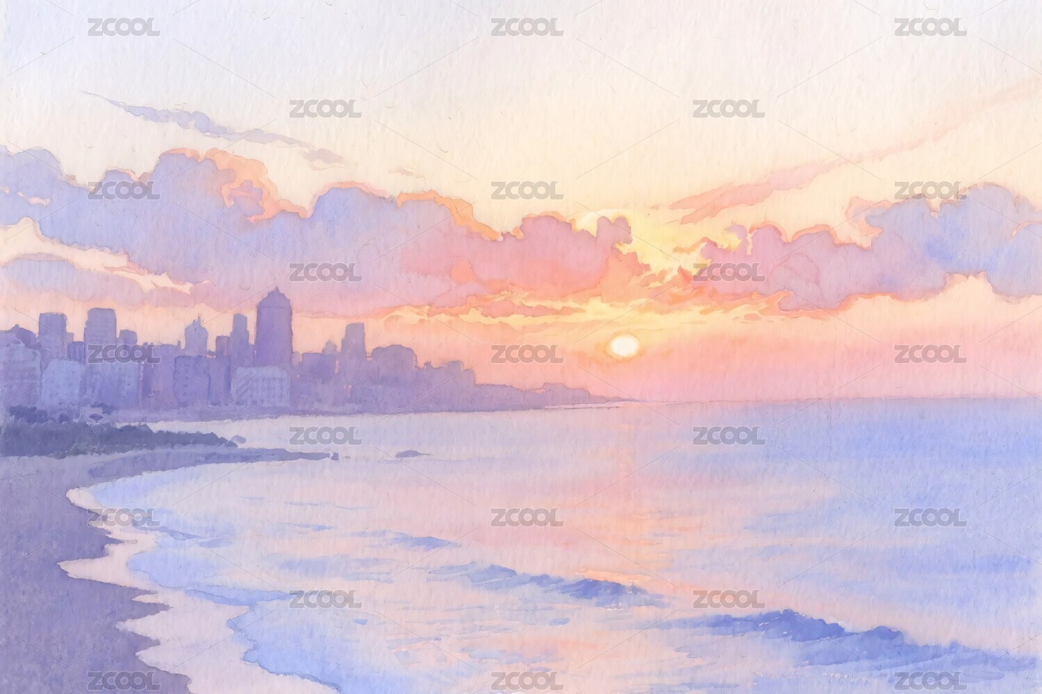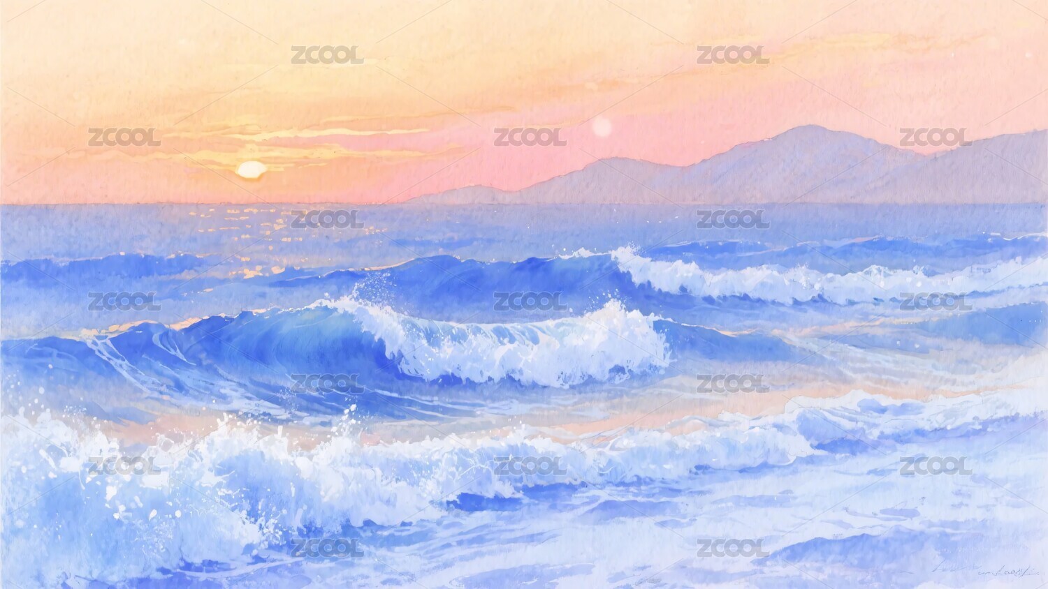 海滩,海洋,日落,沙滩,海浪,风景,自然,插画,日落风景,沙滩美景