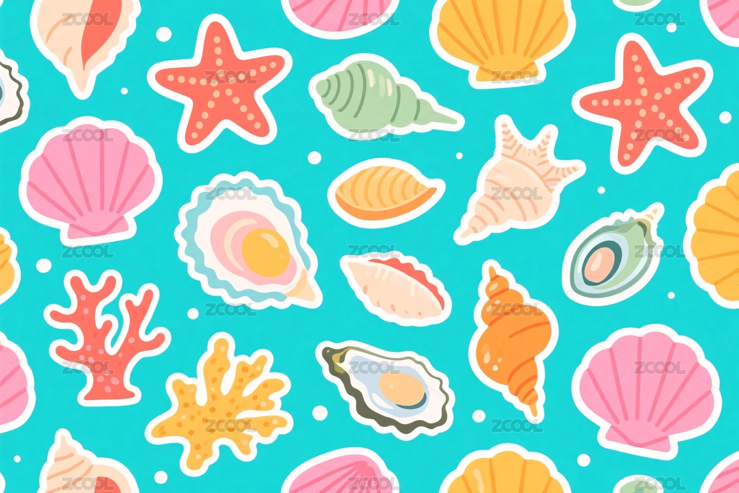 贝壳,海螺,鲨鱼,海洋,图案,插画,背景,装饰,浅色,重复
