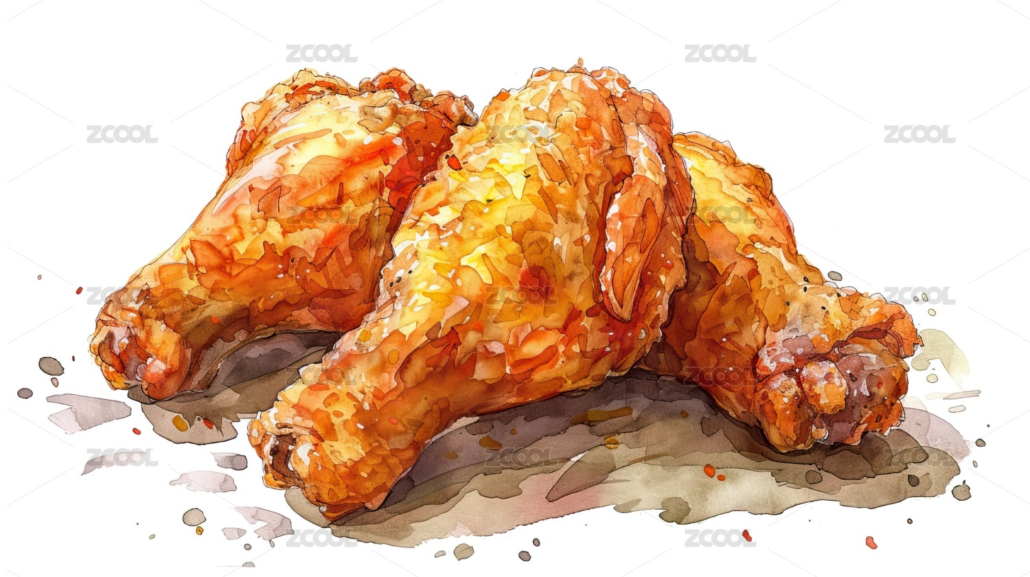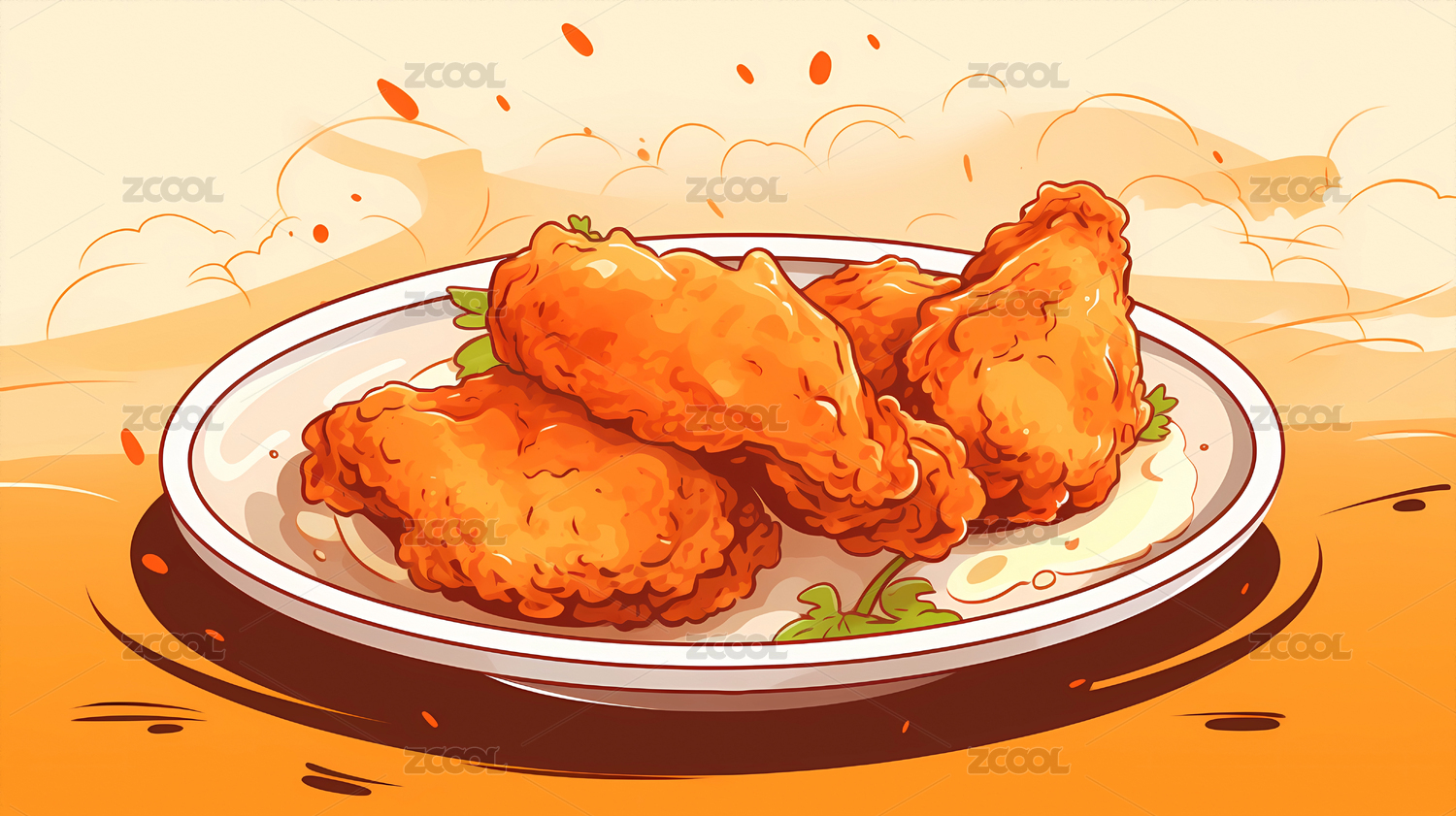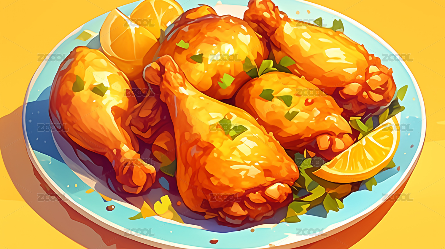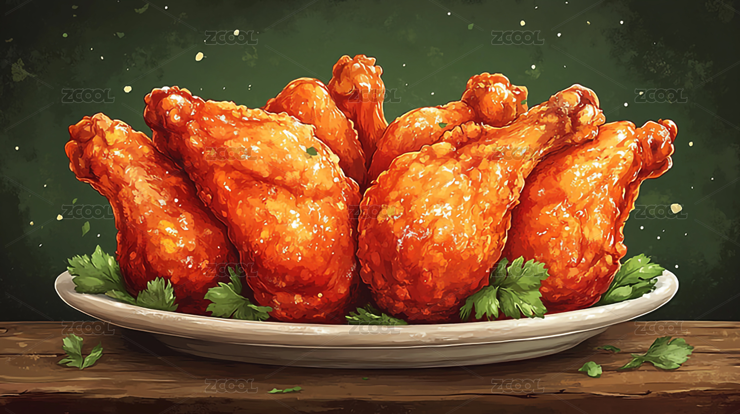 炸鸡翅,蘸酱,芹菜,卤味,饮品,餐盘,插画,美食,餐点,鸡肉