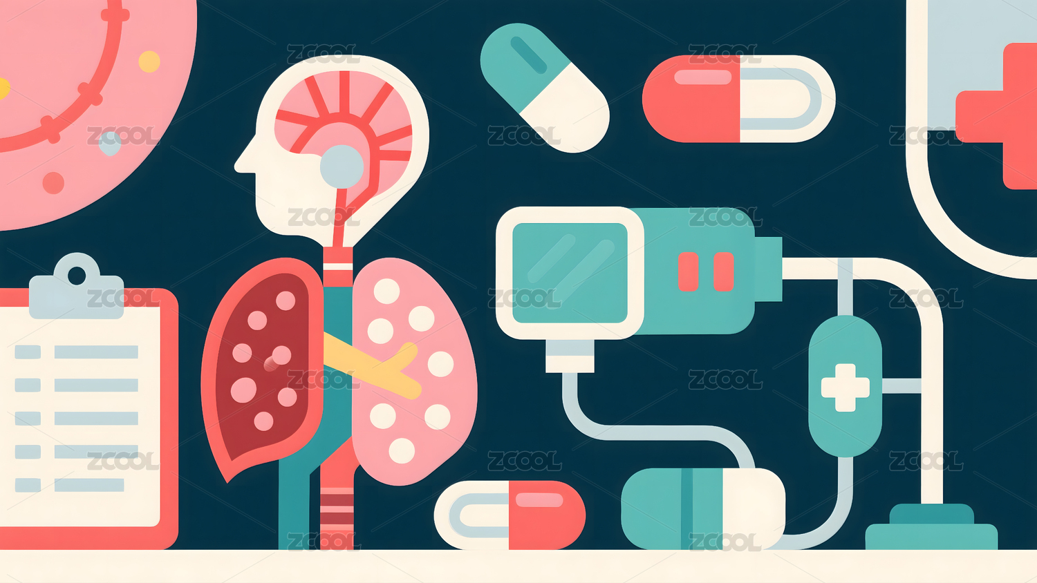原创手绘扁平风格医护人员研究治疗肺炎海报