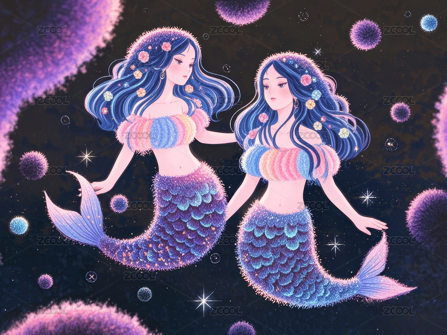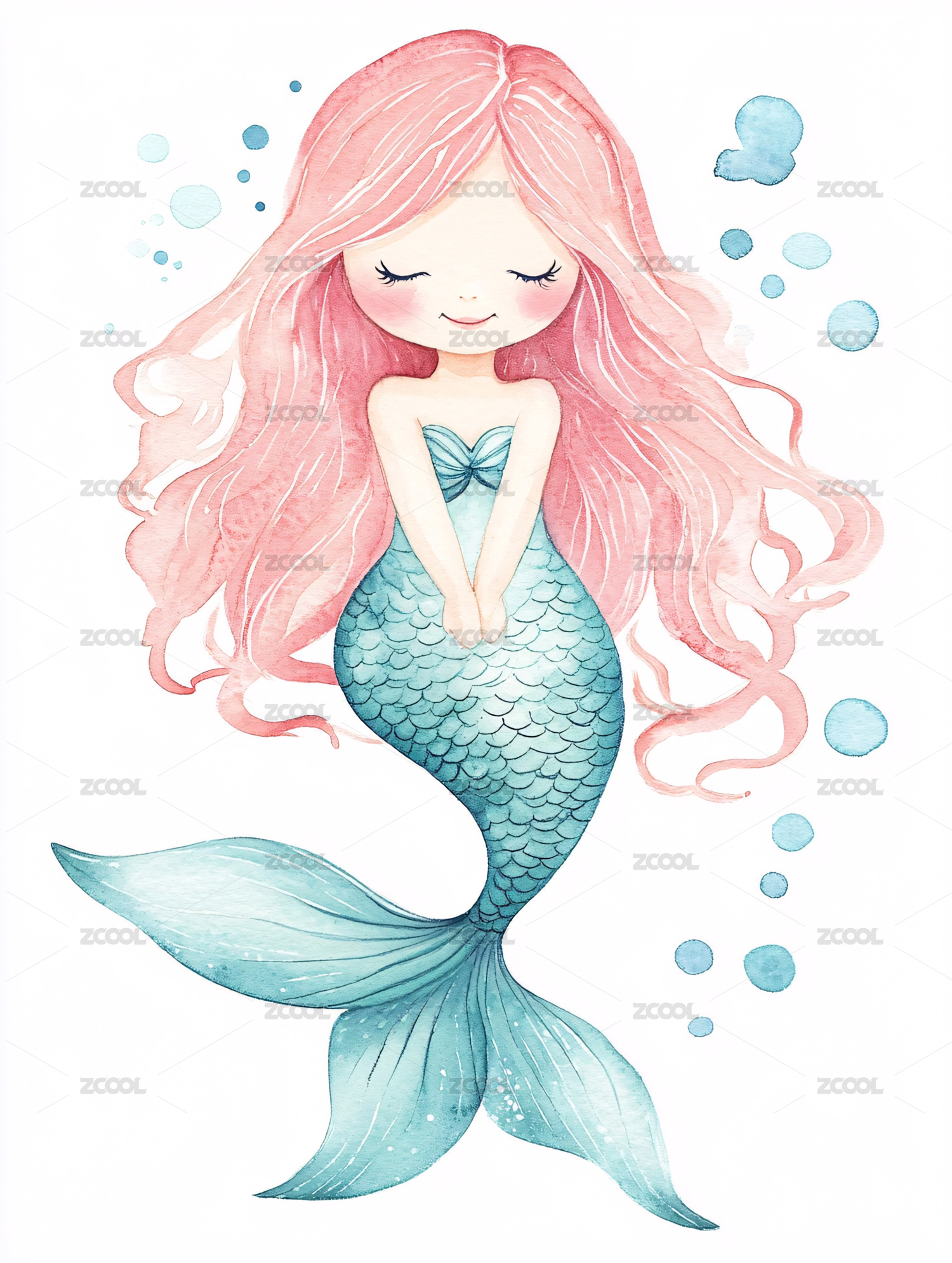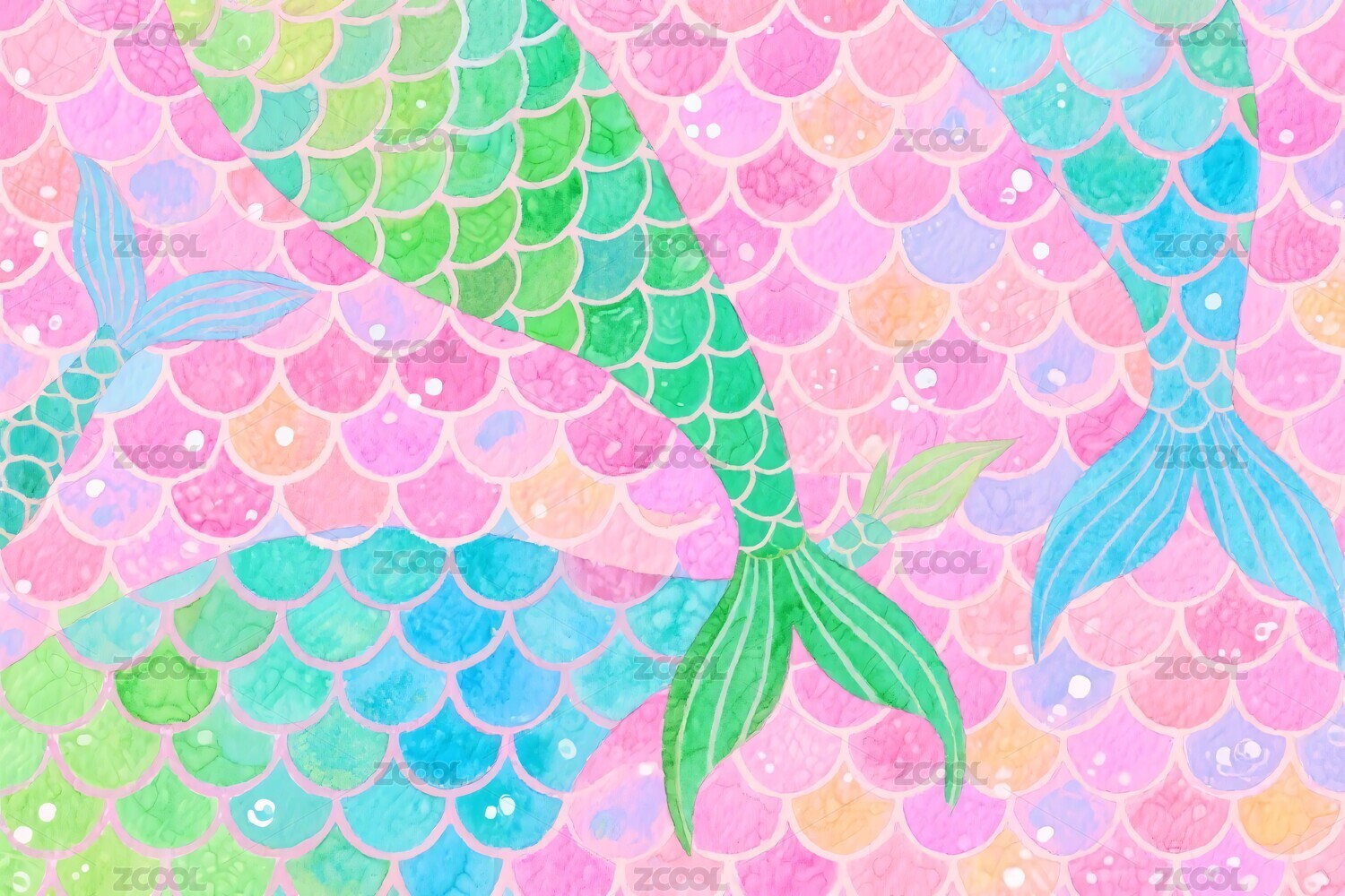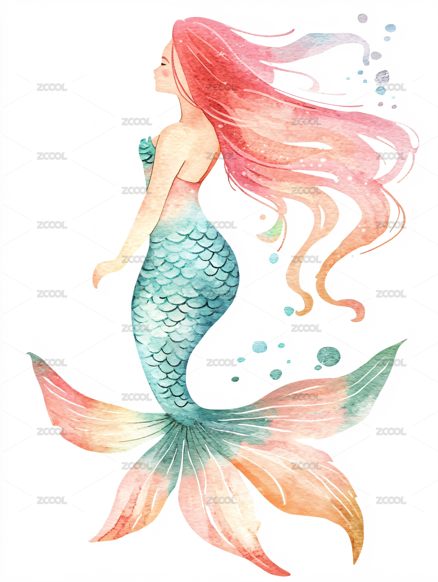 美人鱼,鳞片,插画,卡通,彩色,海洋,幻想,艺术,鱼尾,女孩