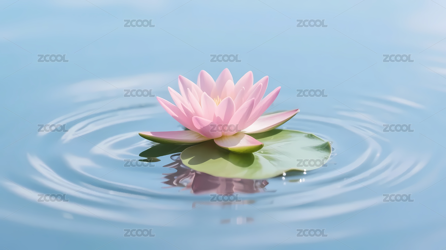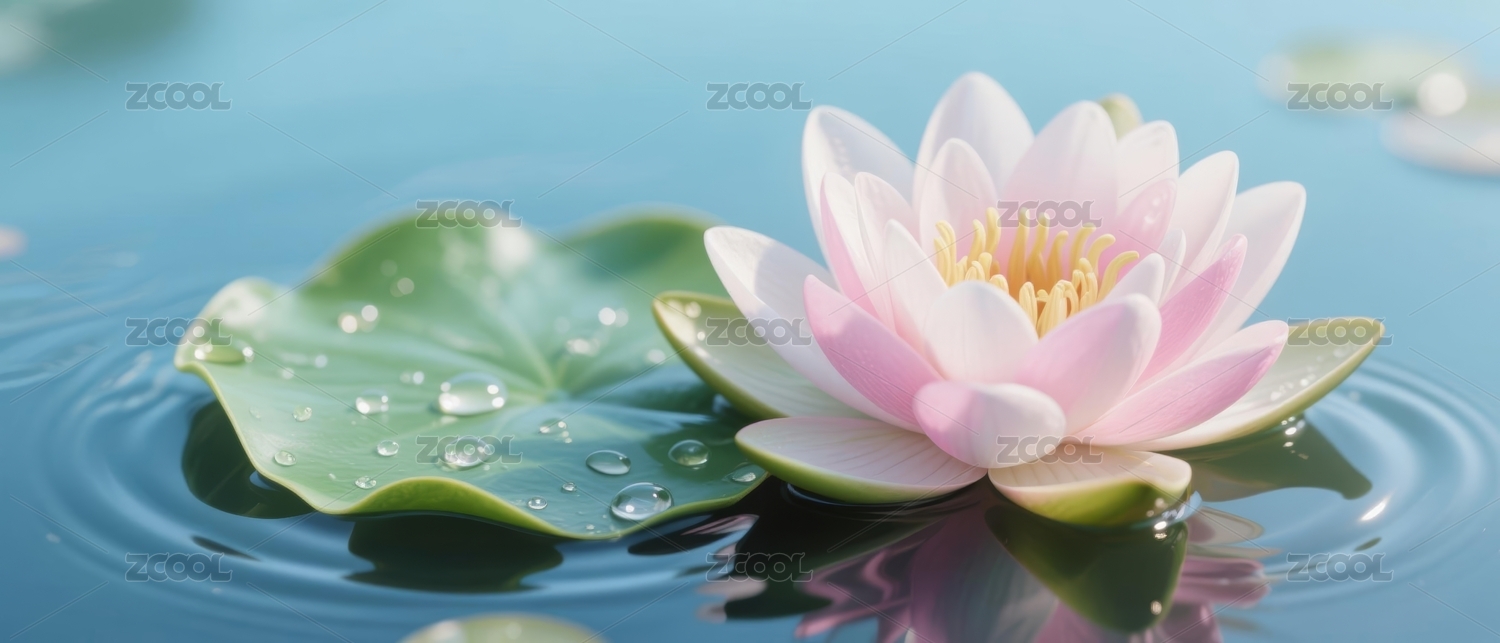 宁静蓝水粉色莲花