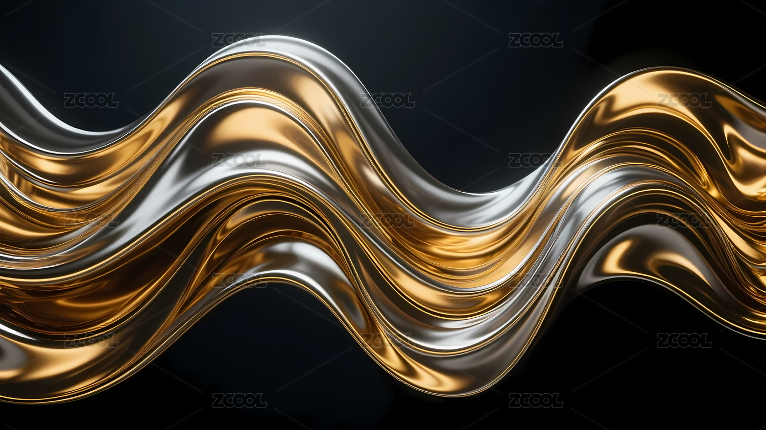 背景,光滑,交织,金色,銀色,流線,動感,深藍,視覺,曲線
