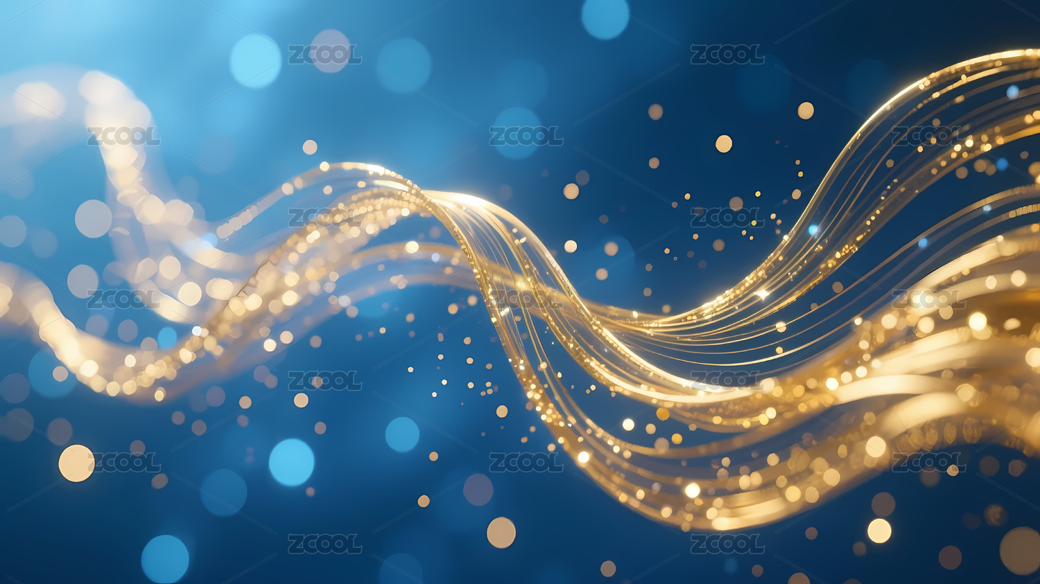 背景,波浪,线条,深蓝,梦幻,金色,光点,效果,华丽,闪烁
