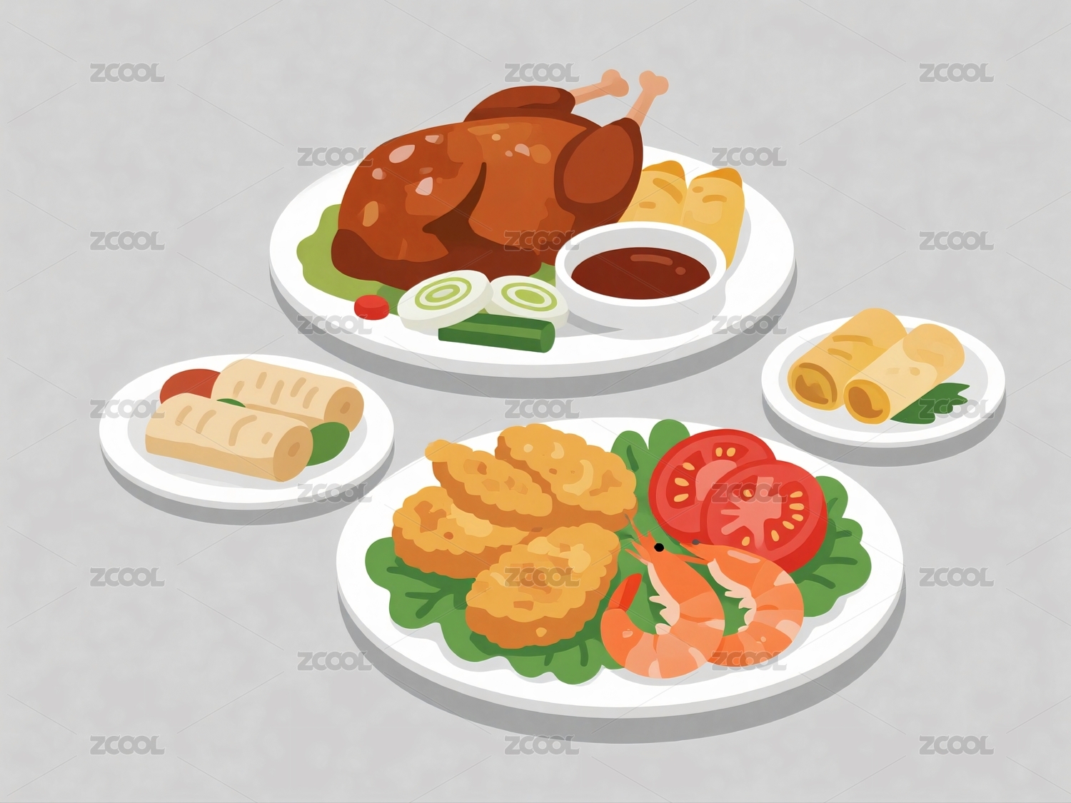 健康早餐美味小吃节日文化午餐晚餐美食插画