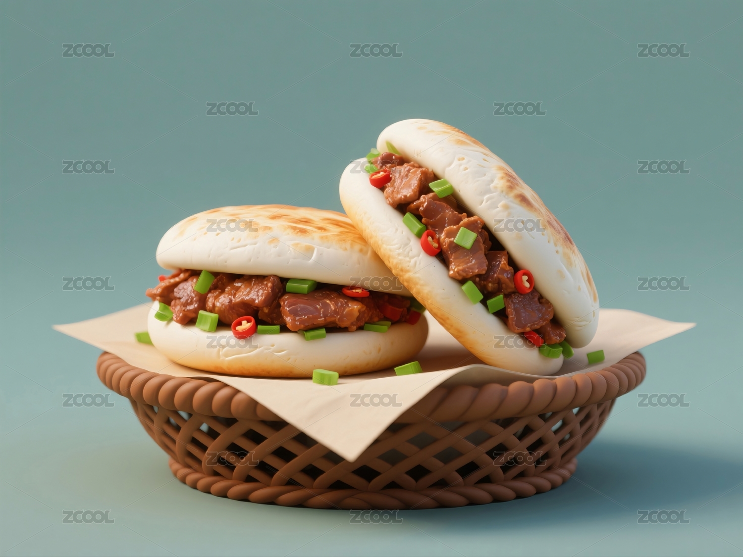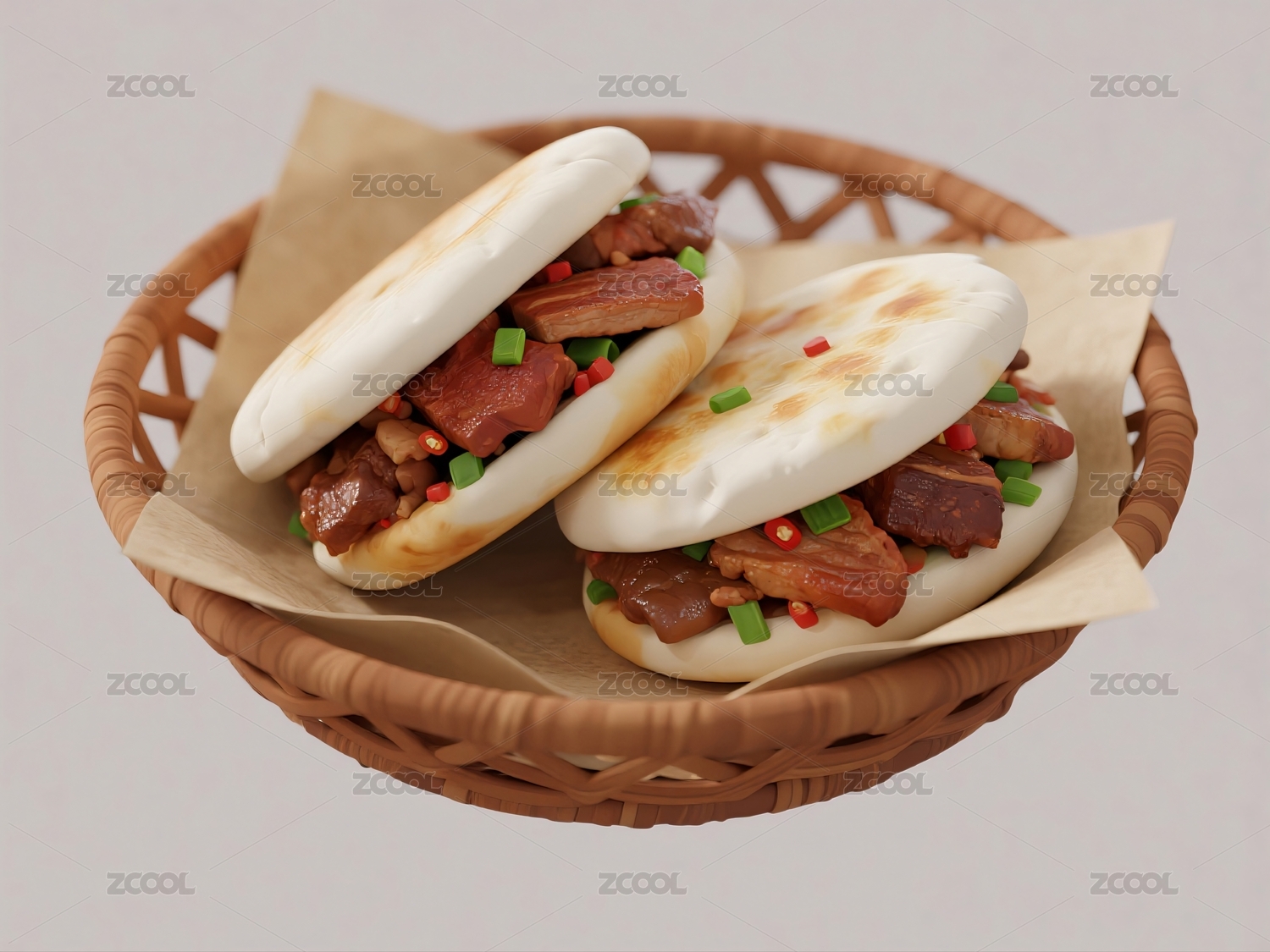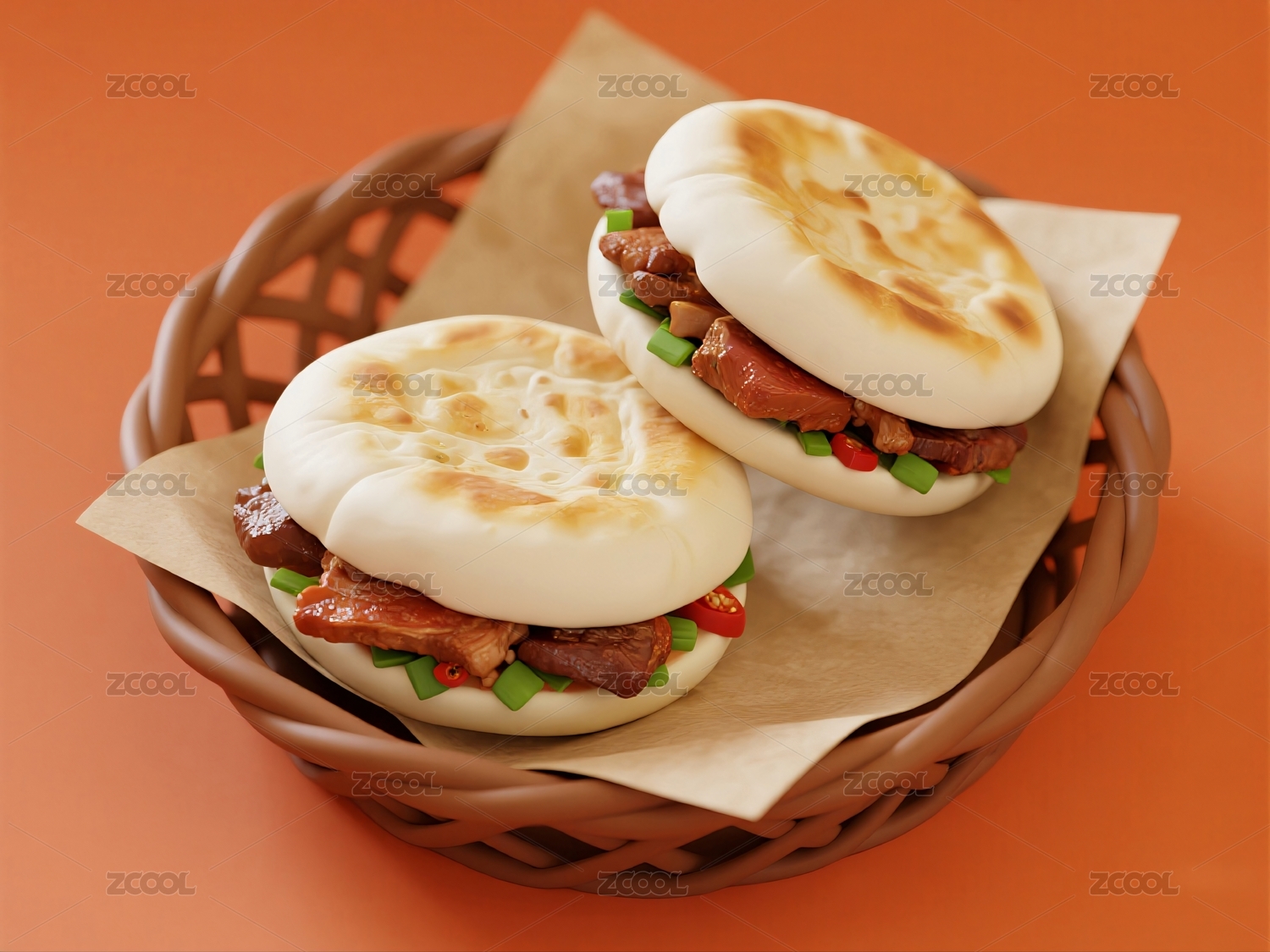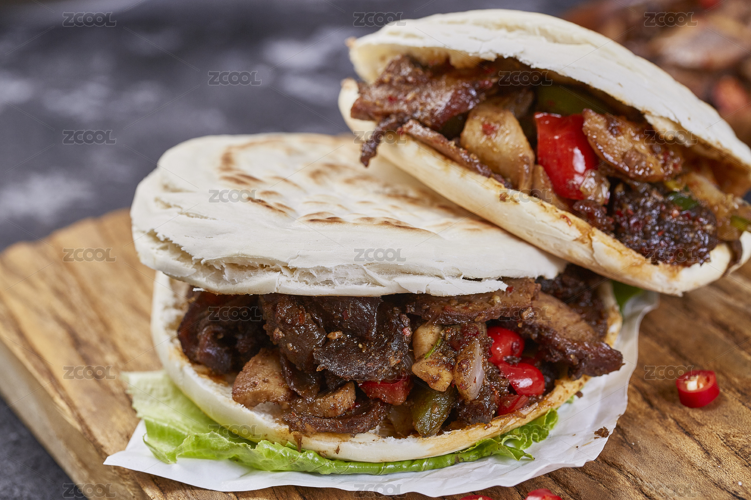 肉夹馍,小吃,馅料,饼子,餐饮,美食,食材,熟食,食物,猪肉