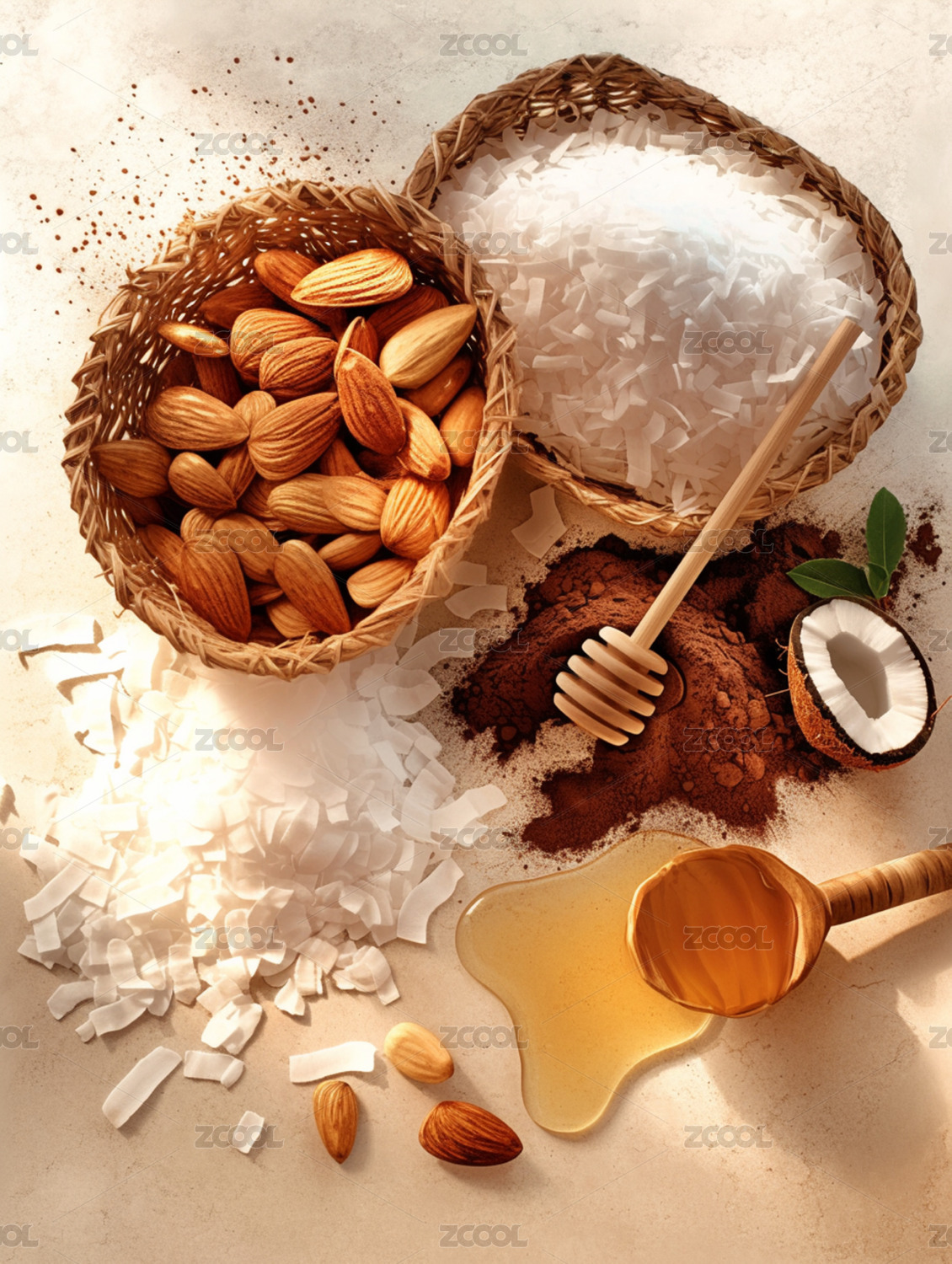坚果,金勺,蜂蜜,流淌,杏仁,金色,勺子,液体,美食,质感