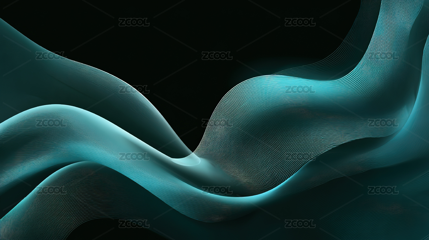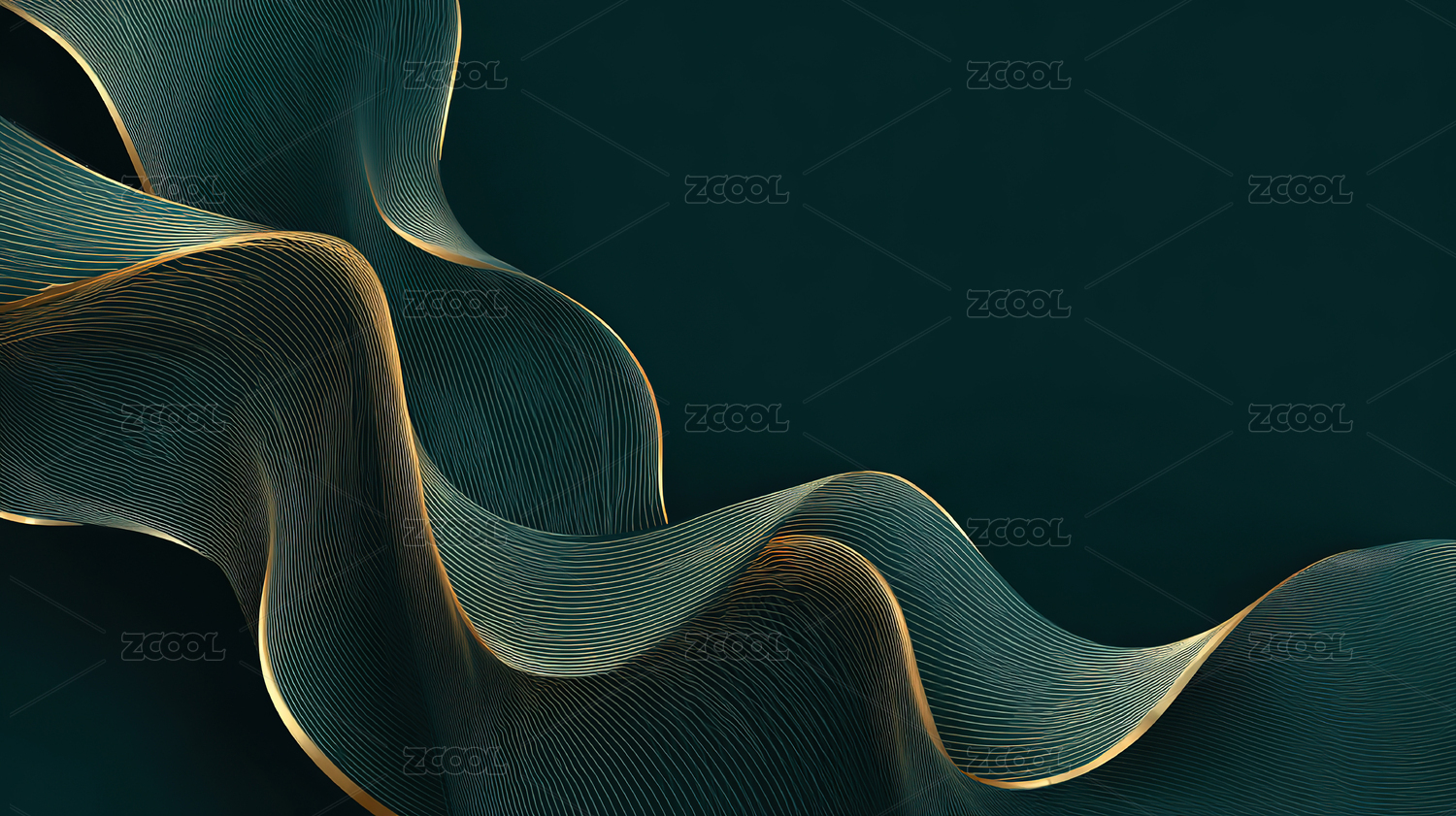 深绿色流动曲线抽象创意广告背景
