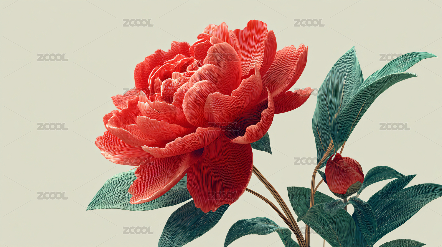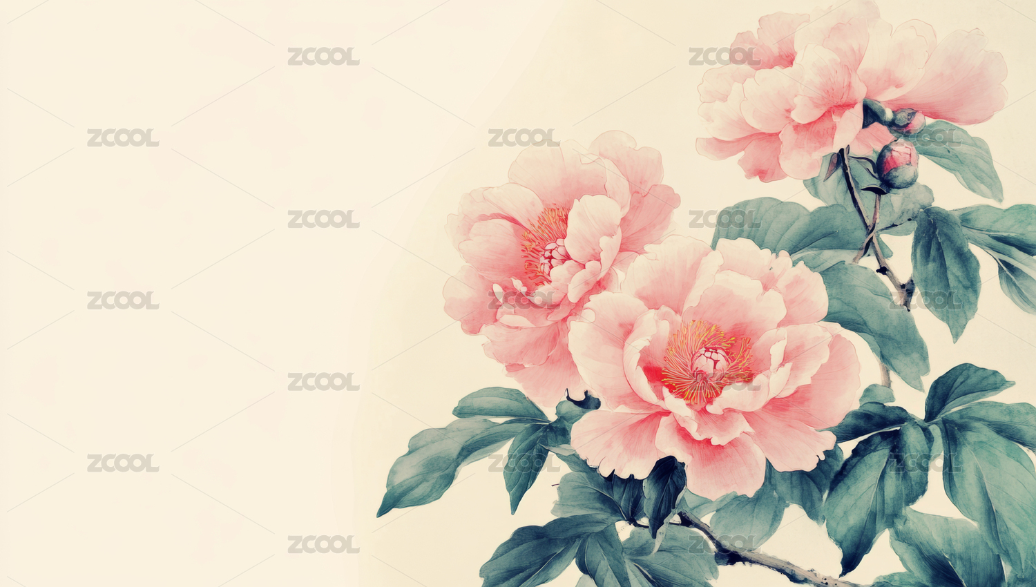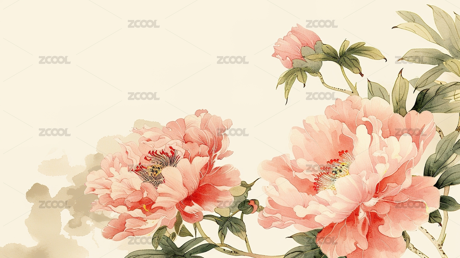 复古工笔风格牡丹花