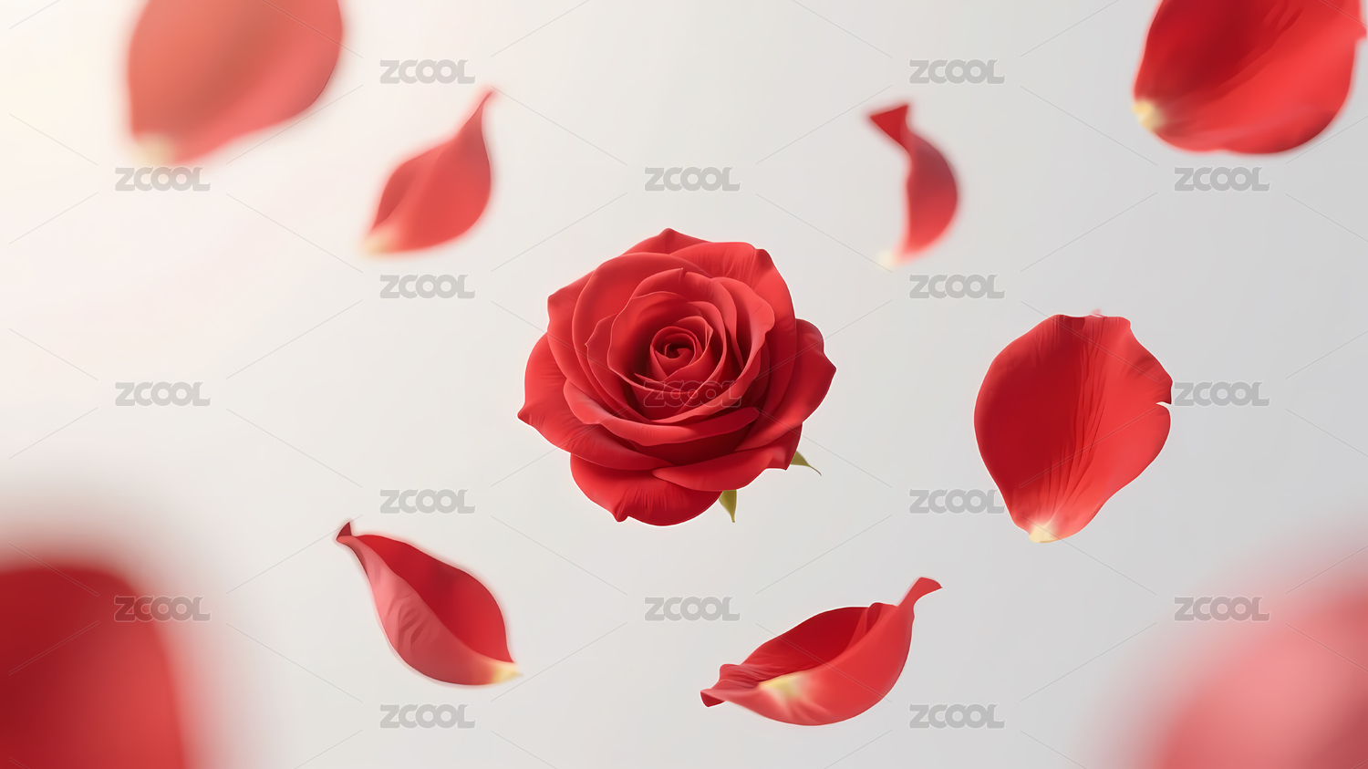 红玫瑰花瓣飘落图