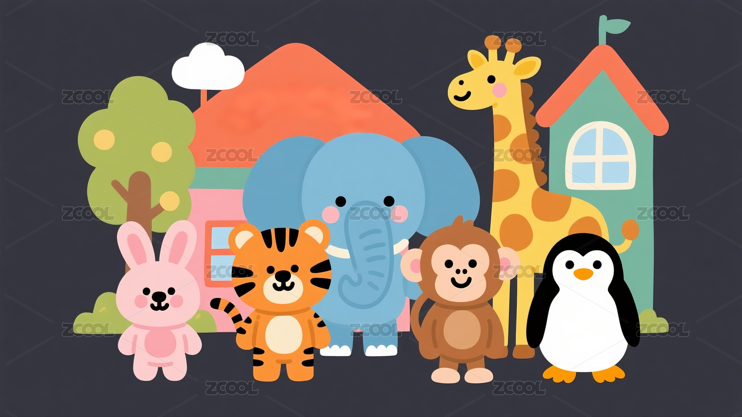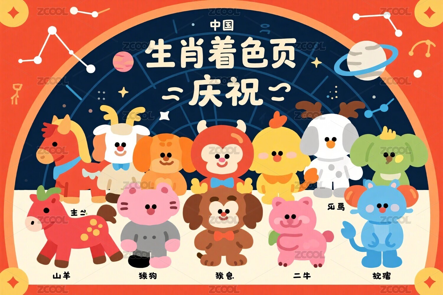 卡通动物,生肖,着色页,插画,图案,色彩,可爱,教育,儿童,平板