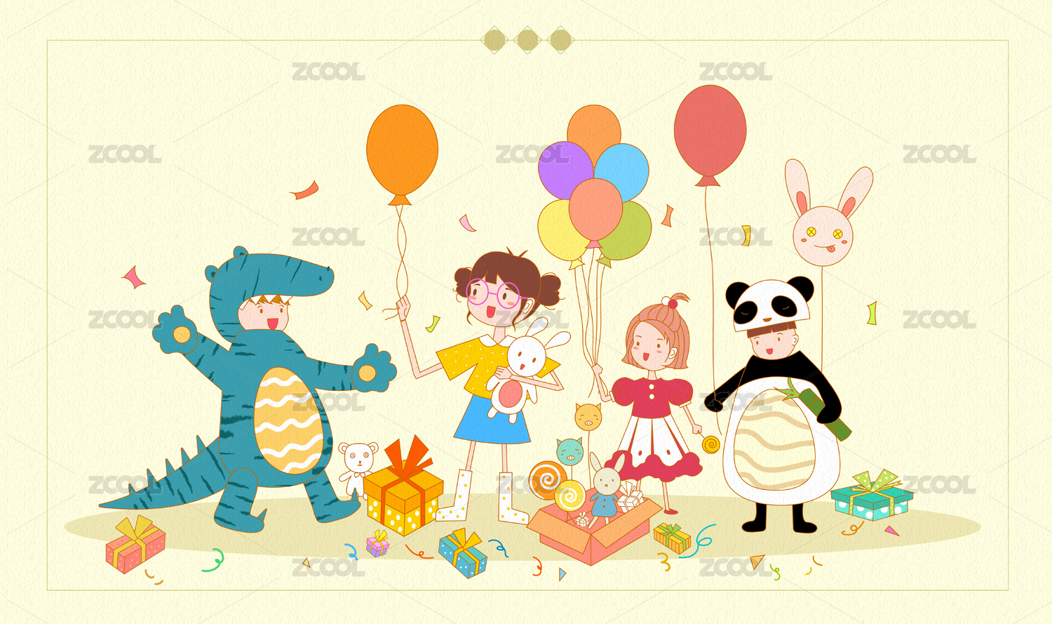 拿着气球的孩子欢乐的庆祝节日儿童节插画