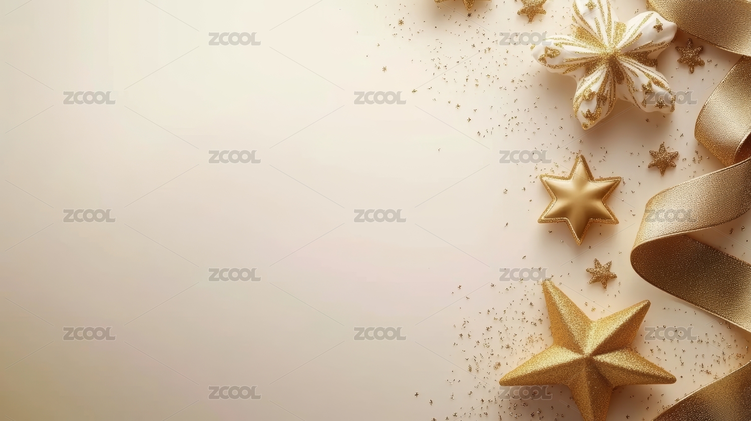 金色星星丝带装饰图