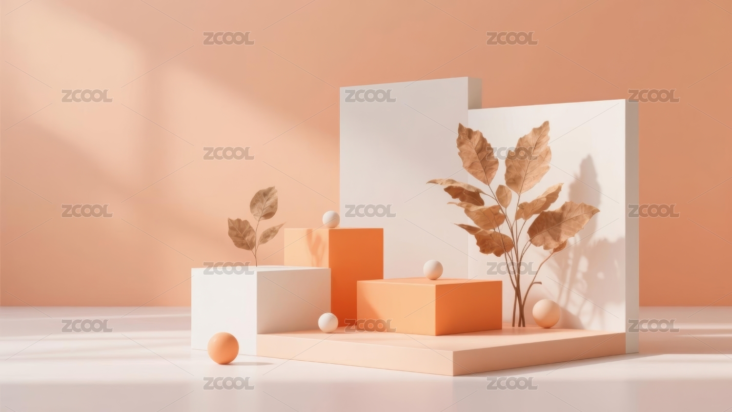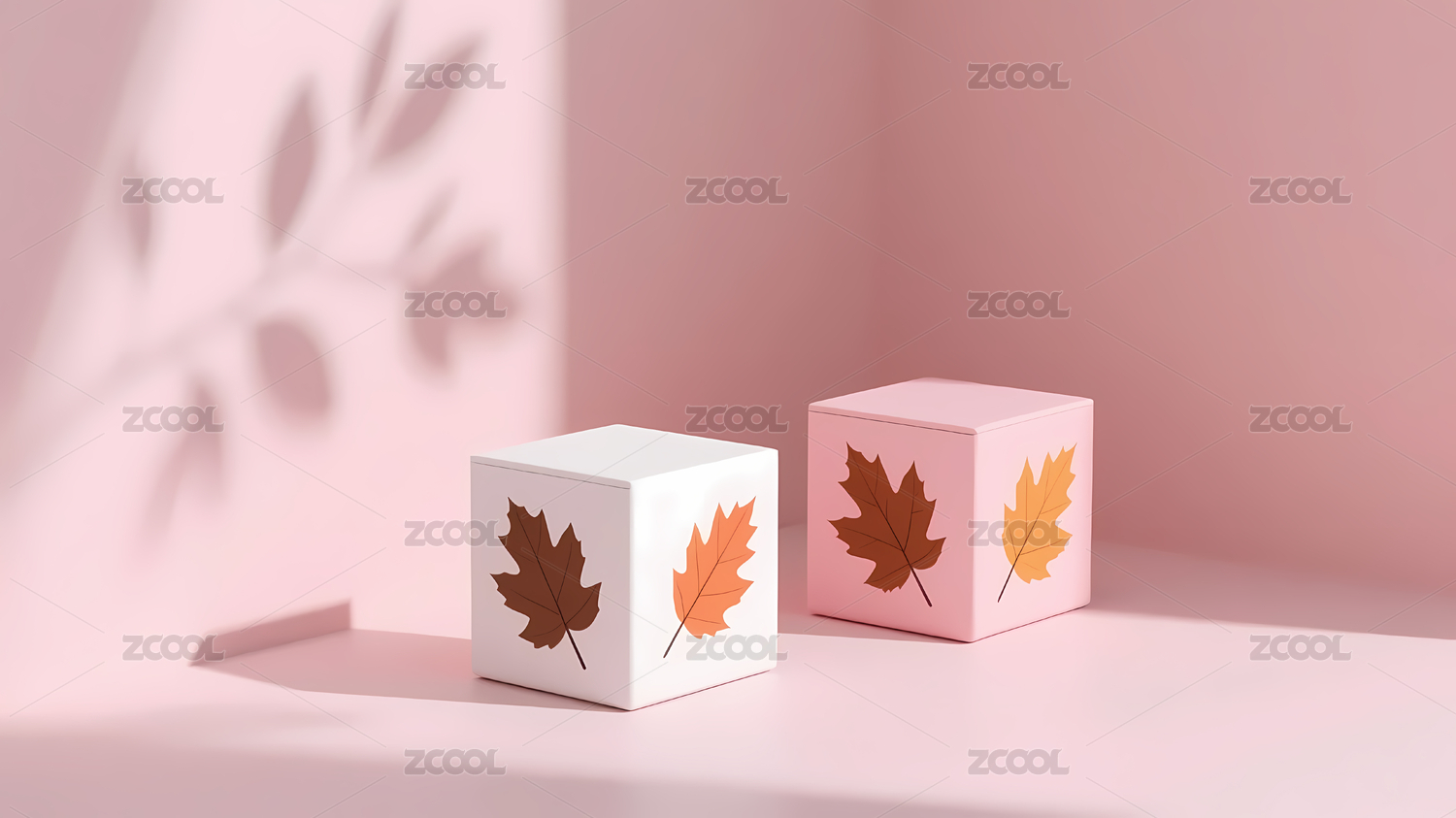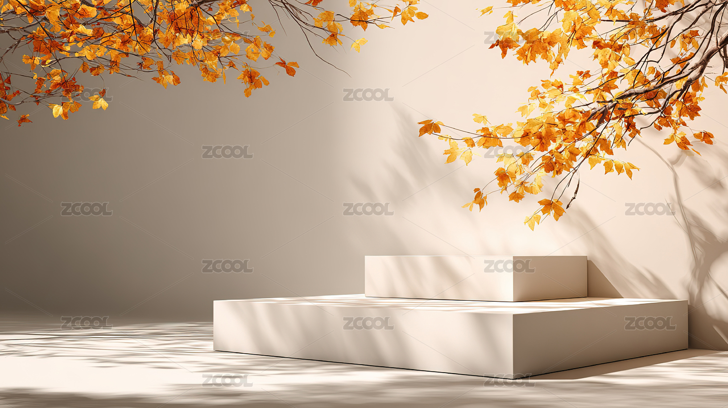 秋叶,白色,几何体,场景,简约,装饰,陈列,秋季,创意,美学