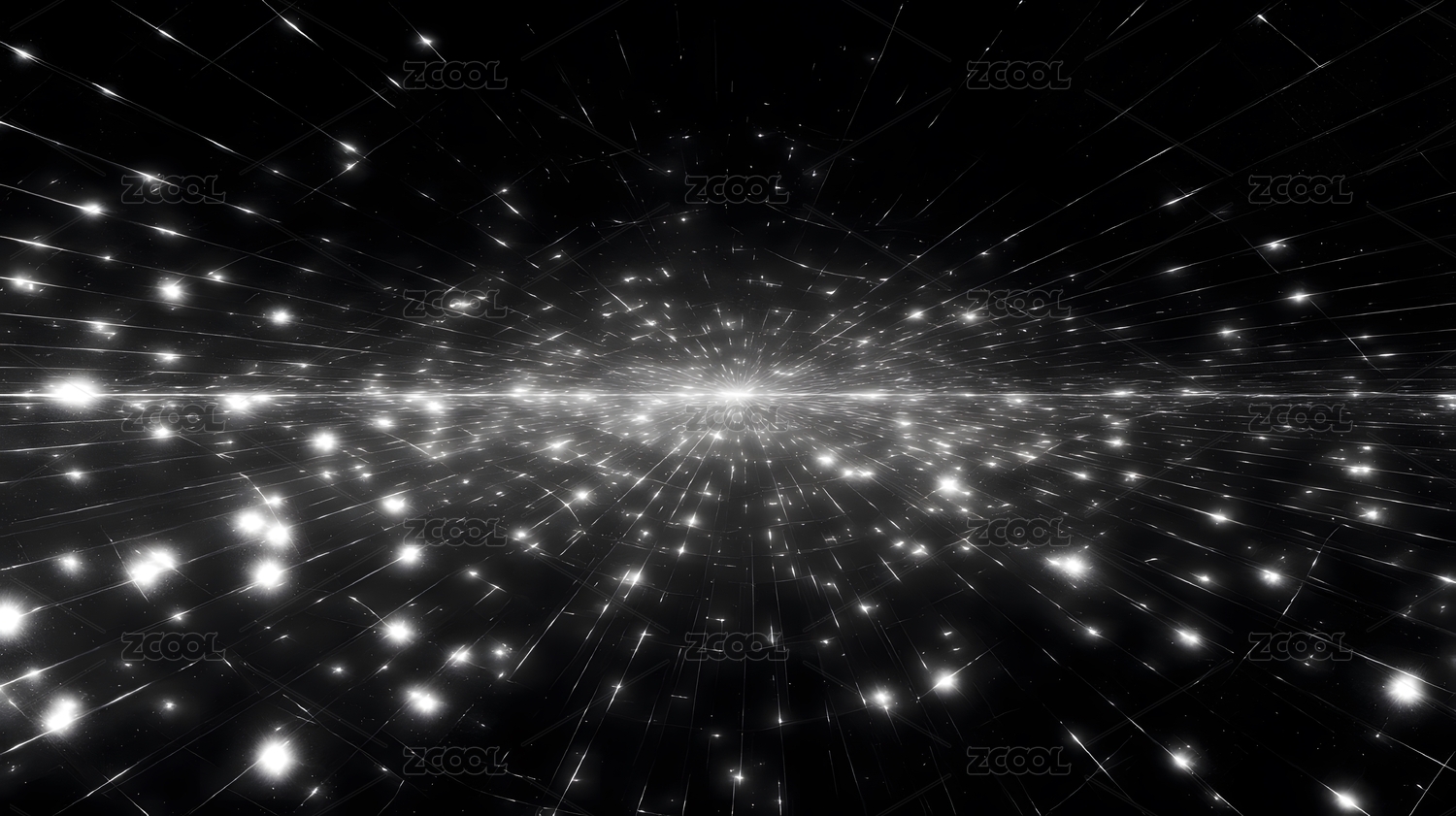 黑白宇宙空间中闪烁的星芒