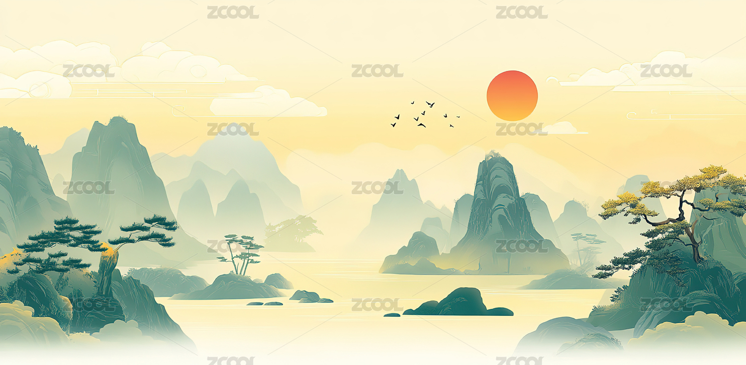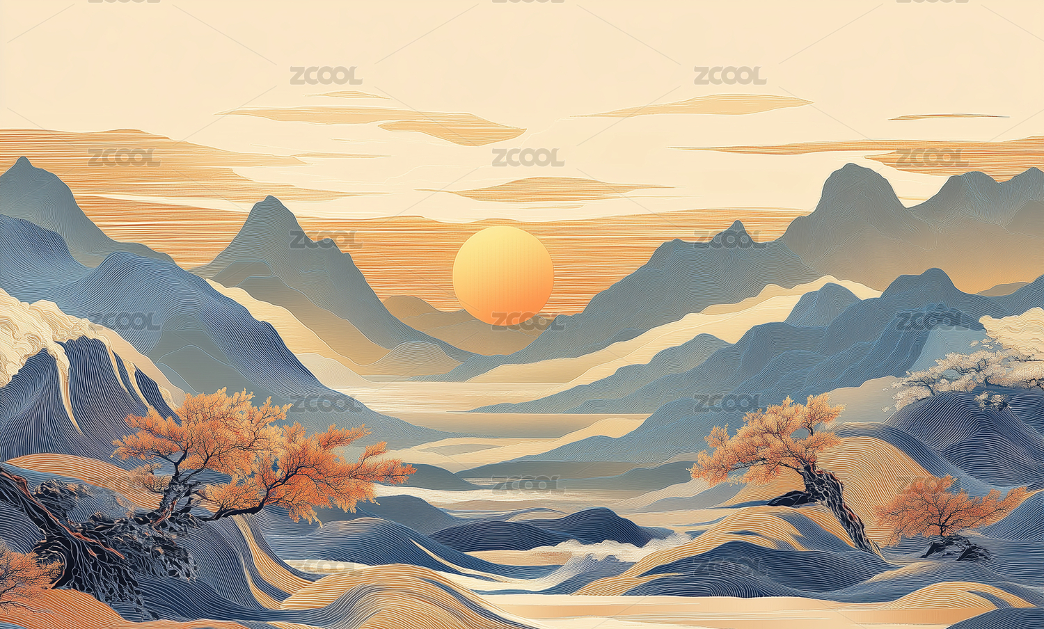 中式,山水,意境,金色,风景,水墨,古典,艺术,国风,装饰