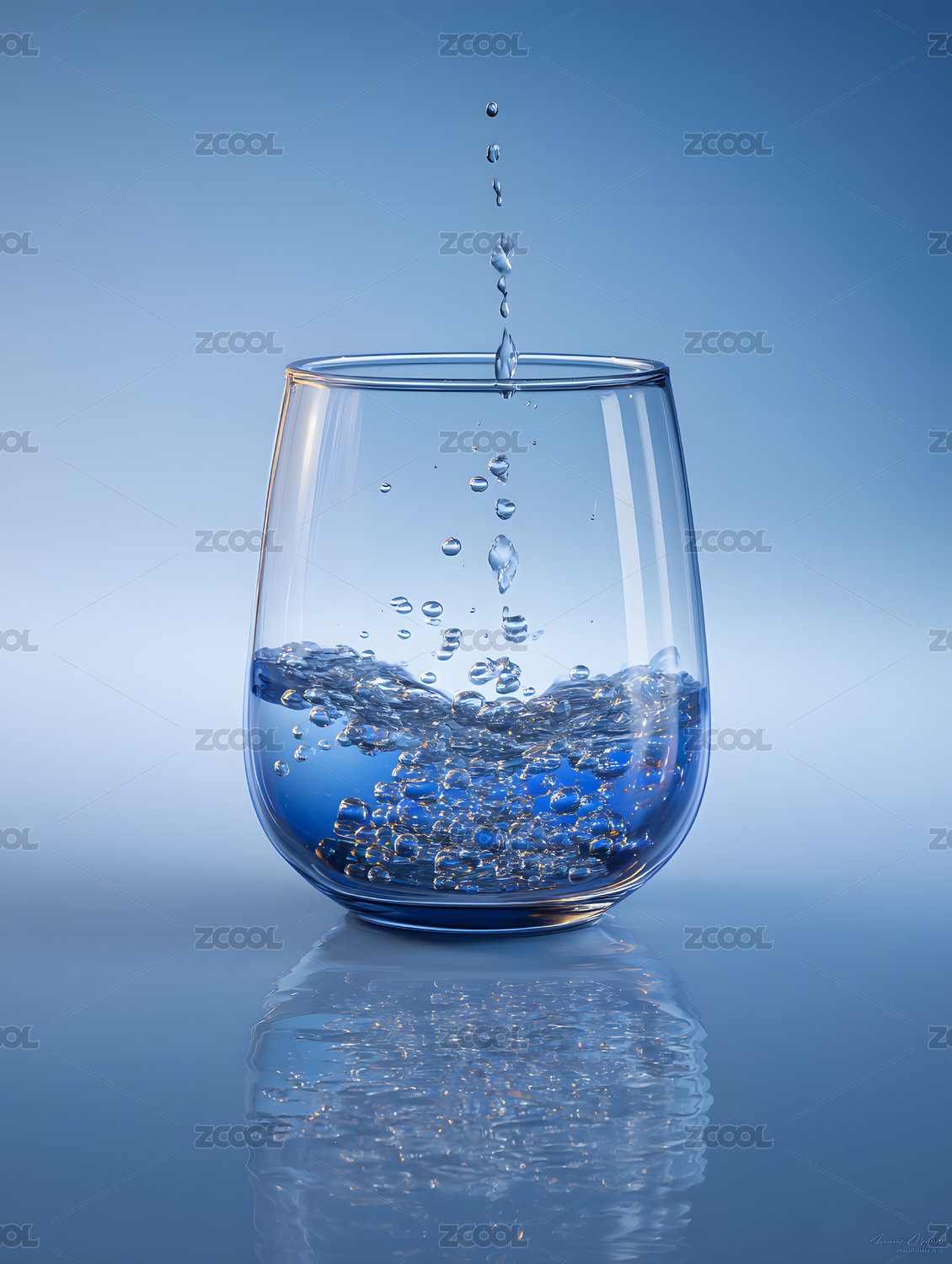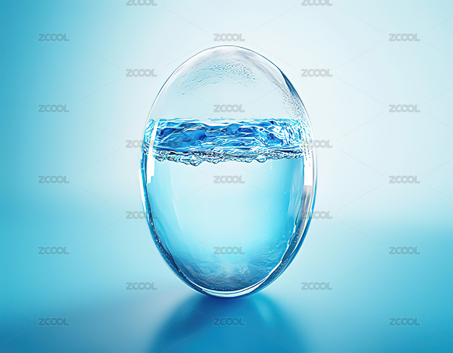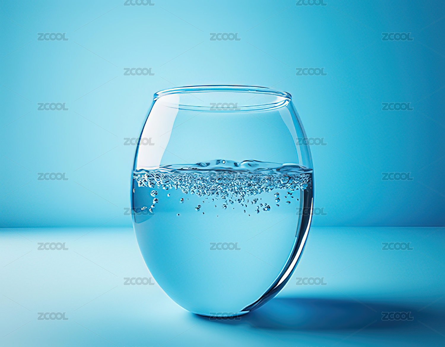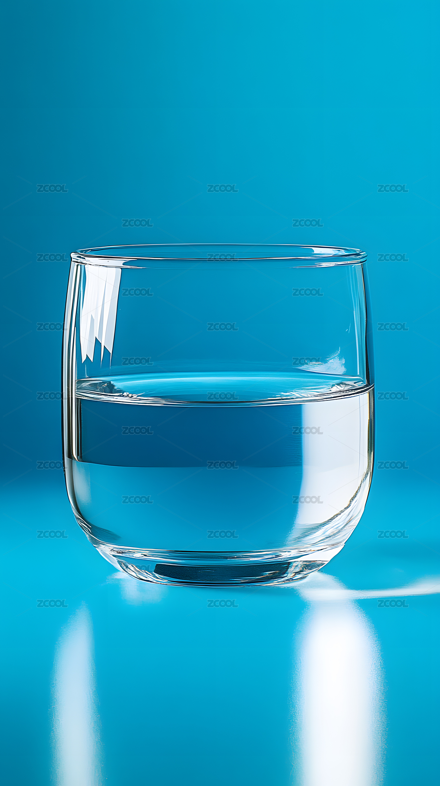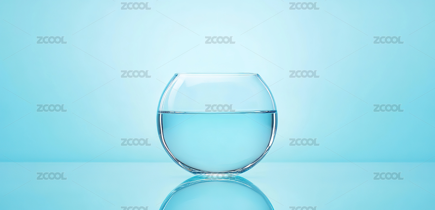 蓝色背景下半杯清水