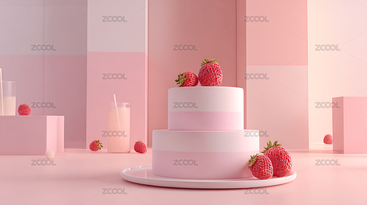 粉色,草莓,蛋糕,美食,甜点,简约,清新,可爱,烘焙,艺术