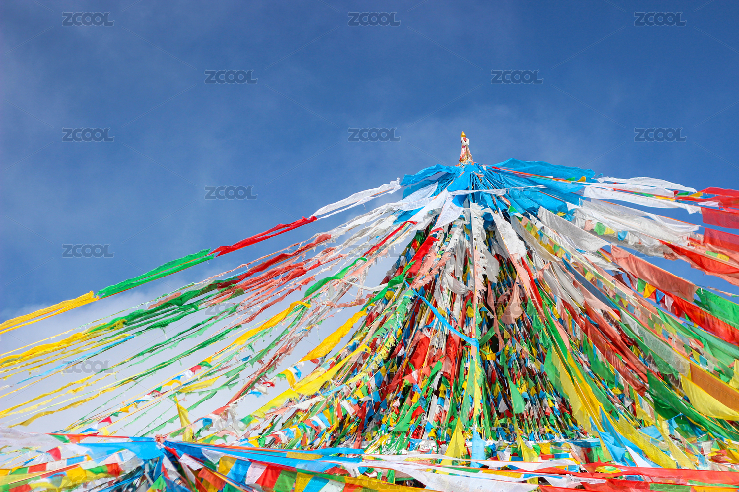 五彩经幡飘扬蓝天之下