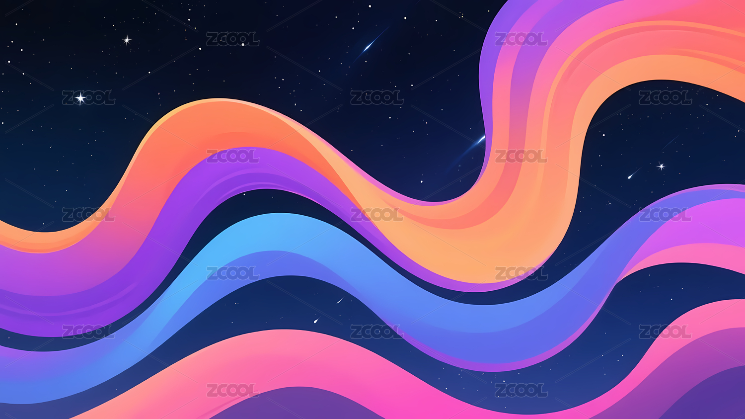橙色,蓝色,背景,粉色,紫色,波浪,星空,线条,点点,星光