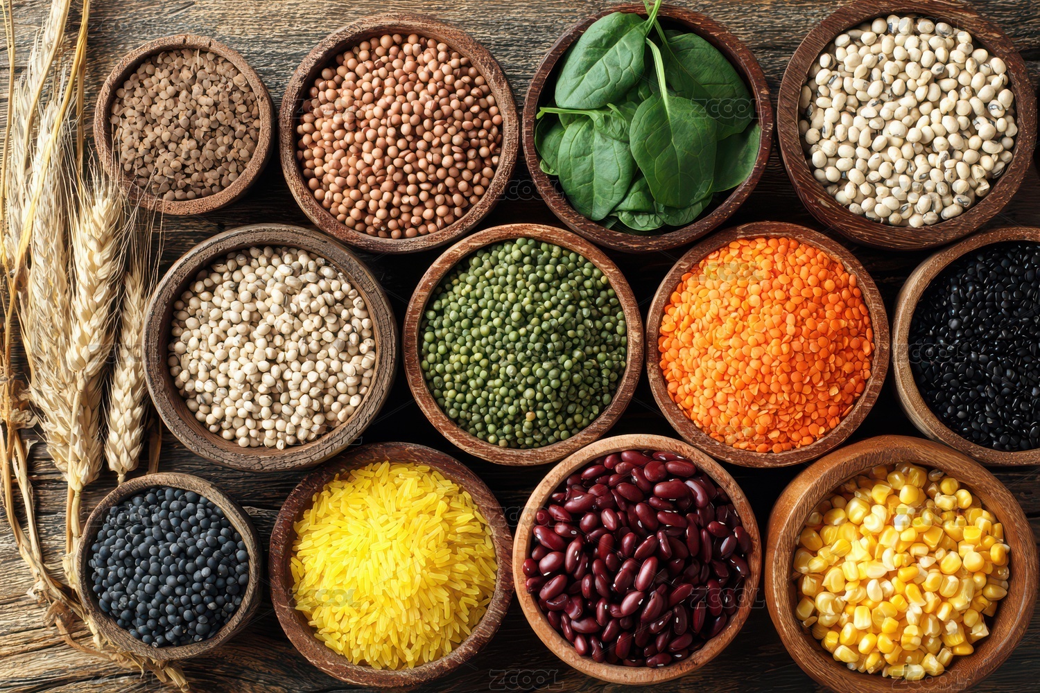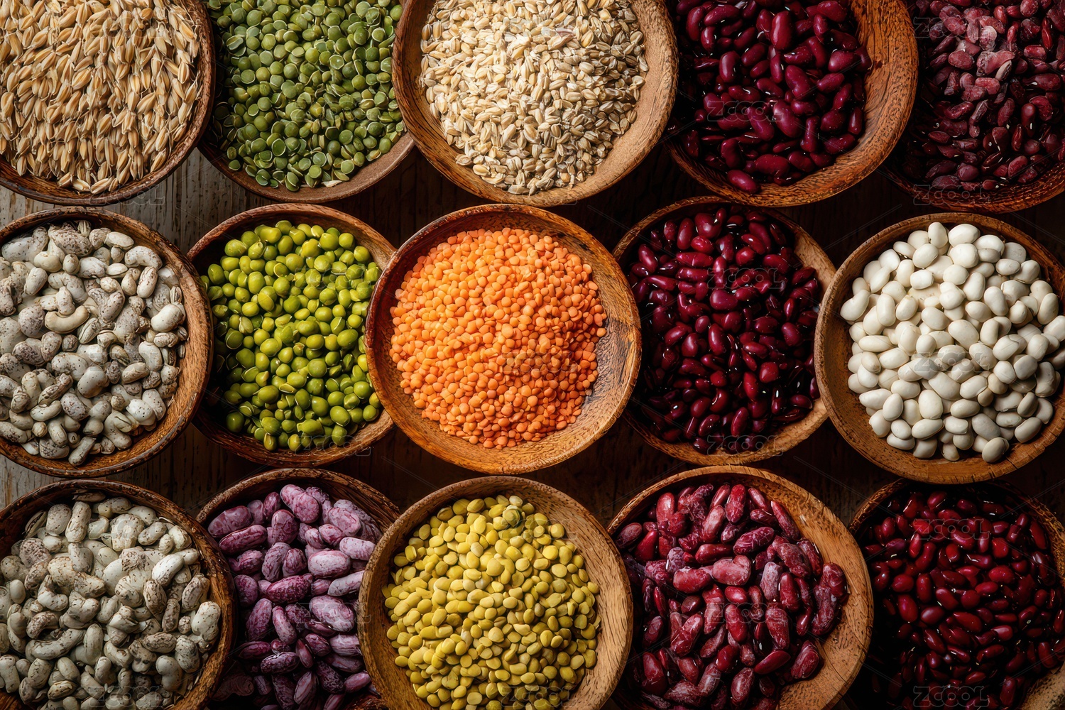谷物,丰富,豆类,健康,食材,营养,碗盘,多色,美食,天然