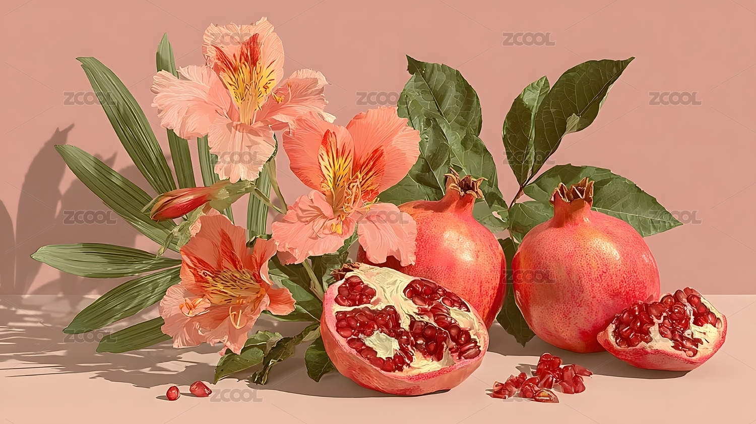 石榴与花卉静物组合