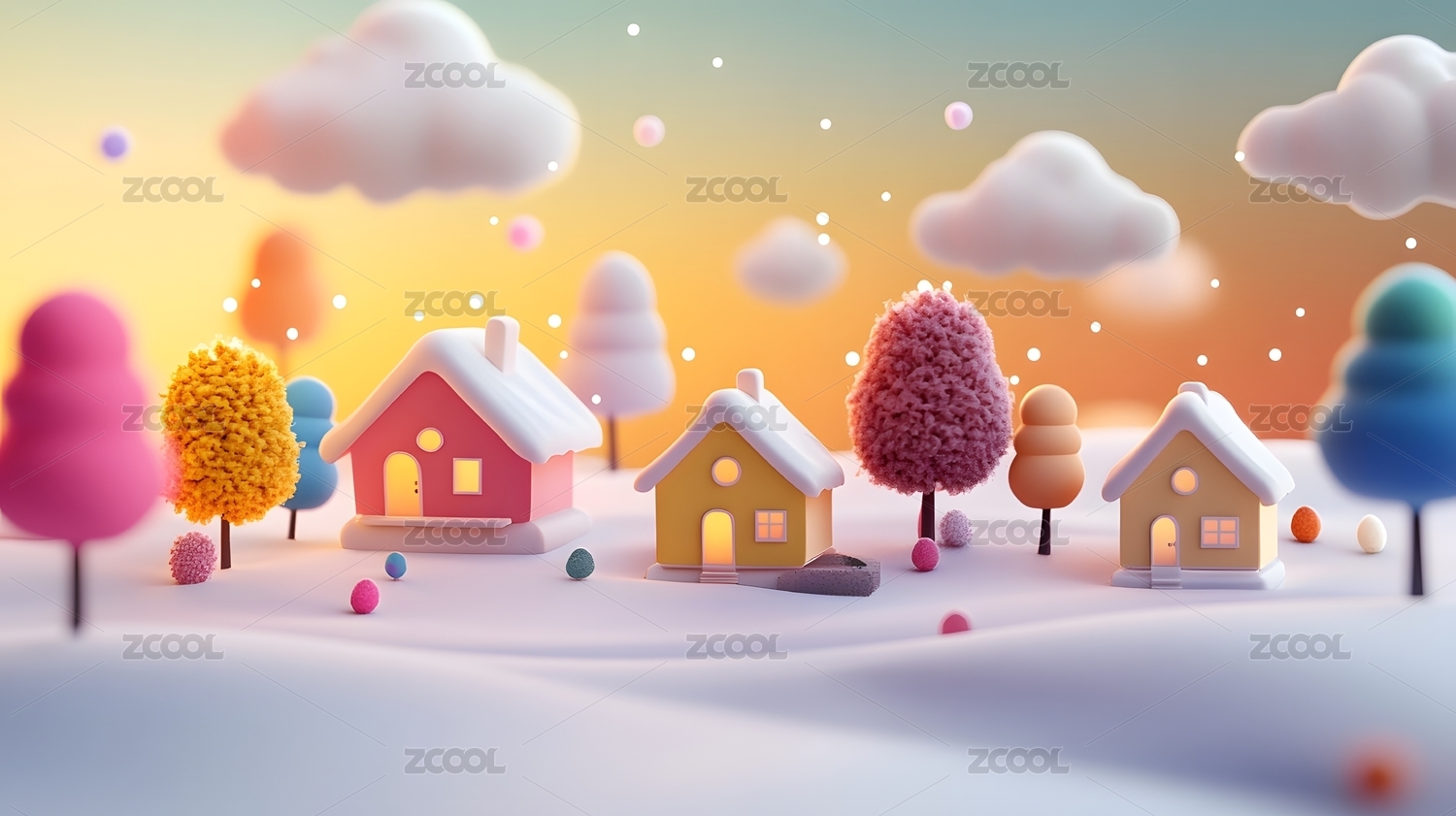 云朵,粉色,天空,蓝色,房子,灯光,白色,房屋,窗户,树木