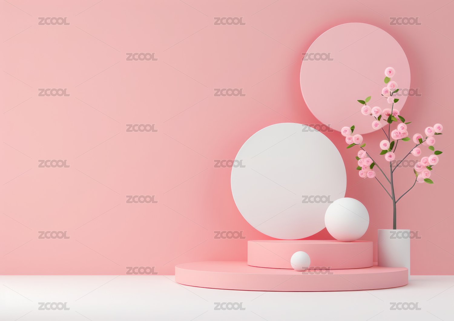 3D渲染粉红色电商产品展台背景