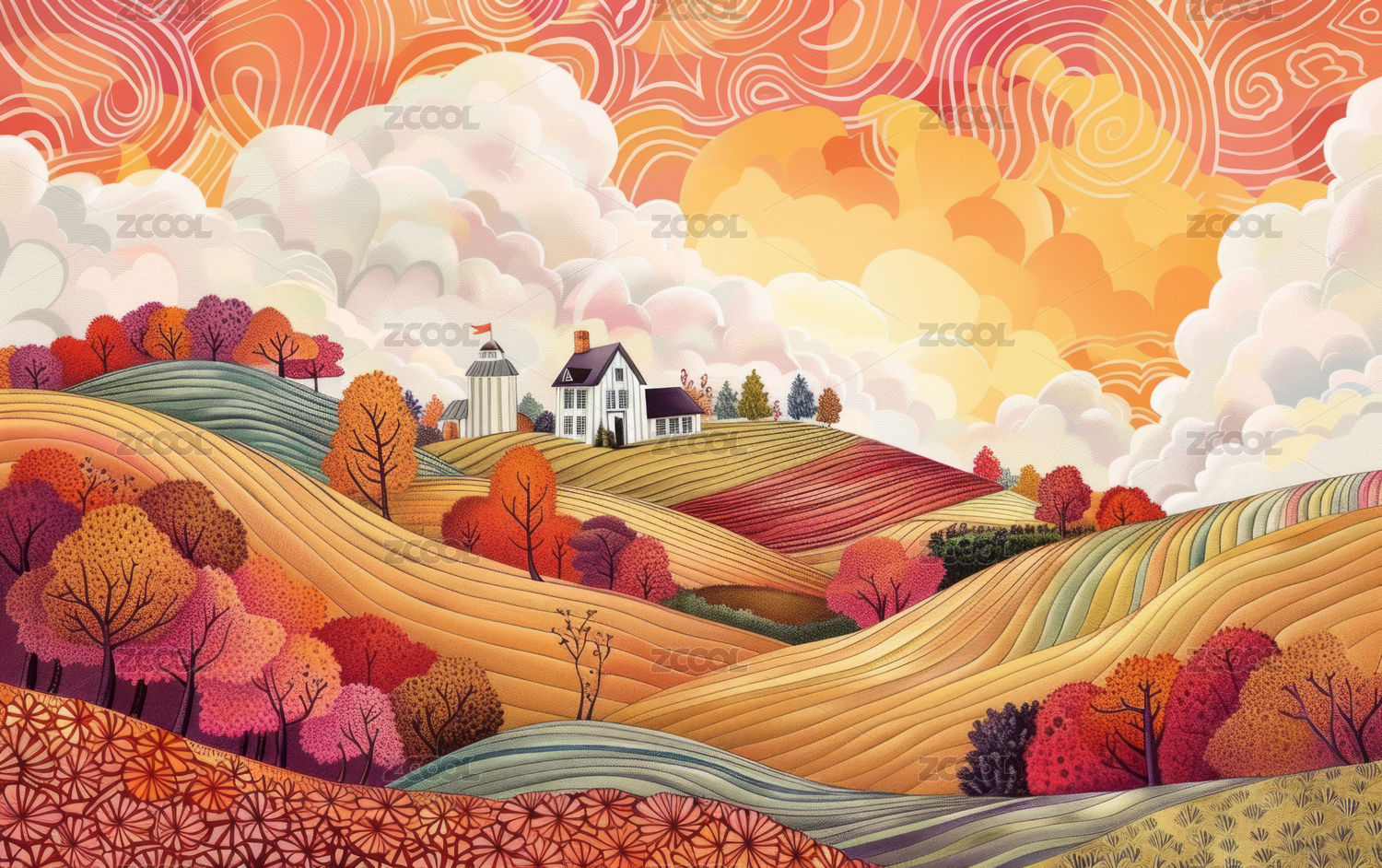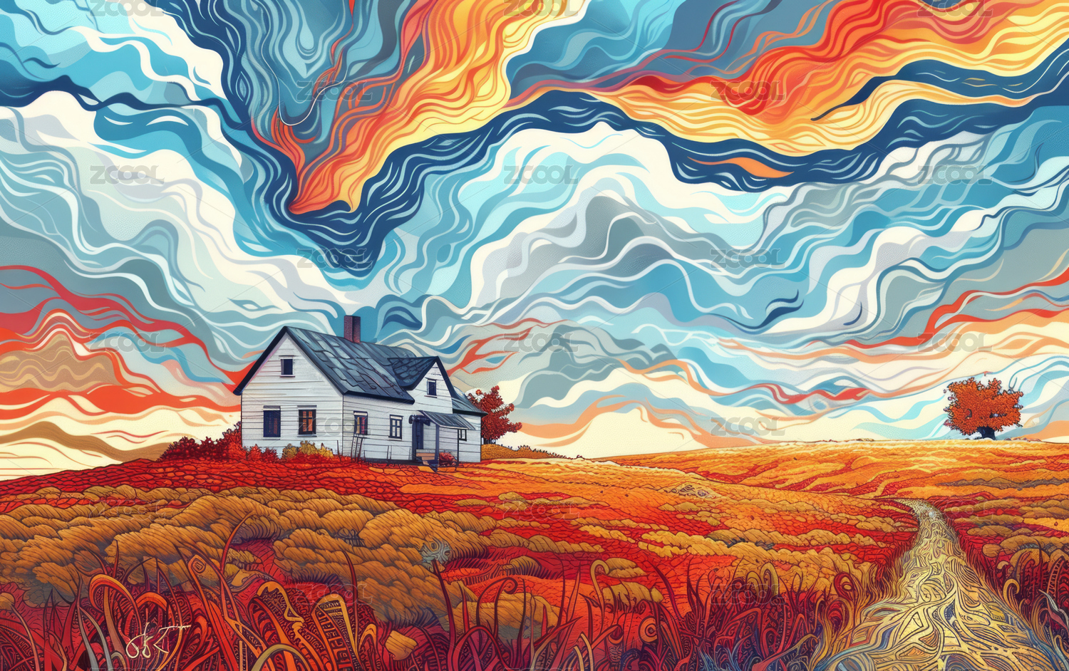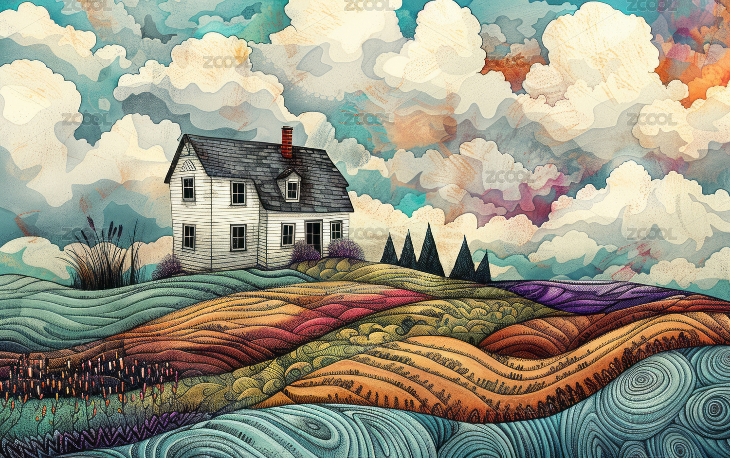 迷幻风格的欧美自然景观艺术插画