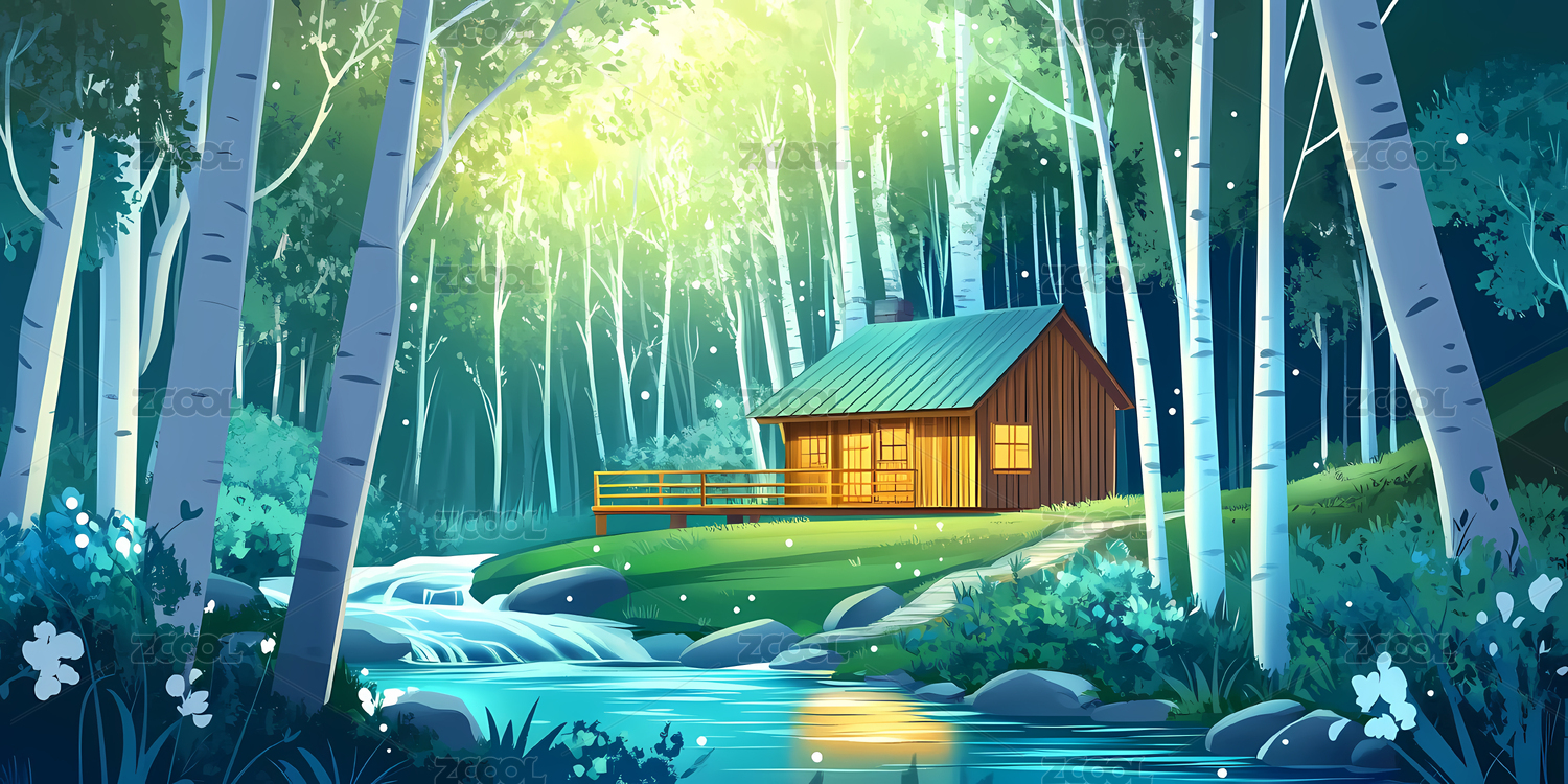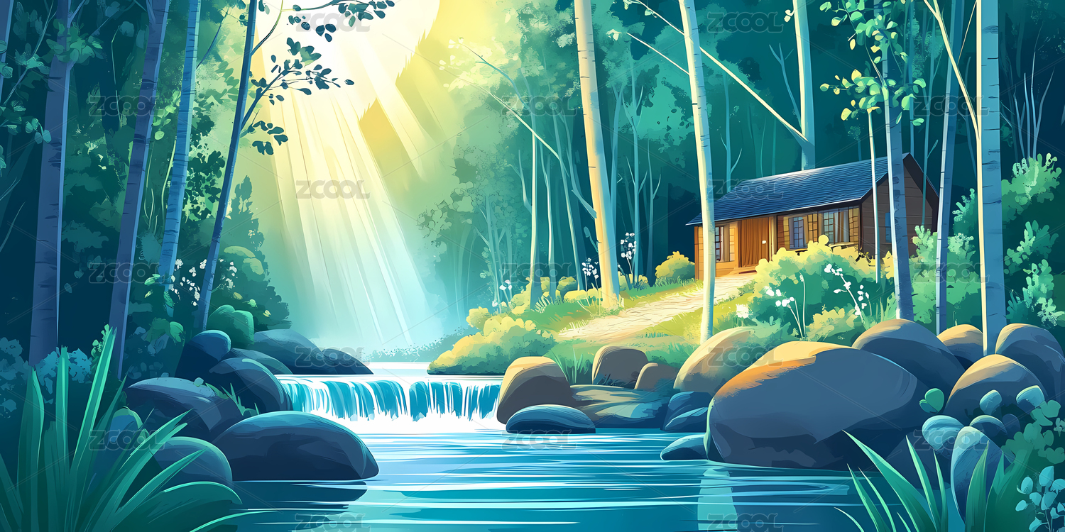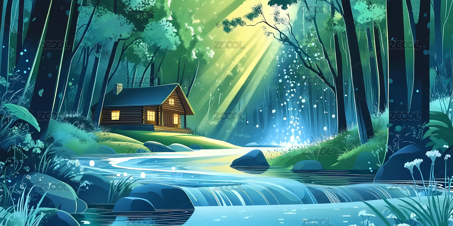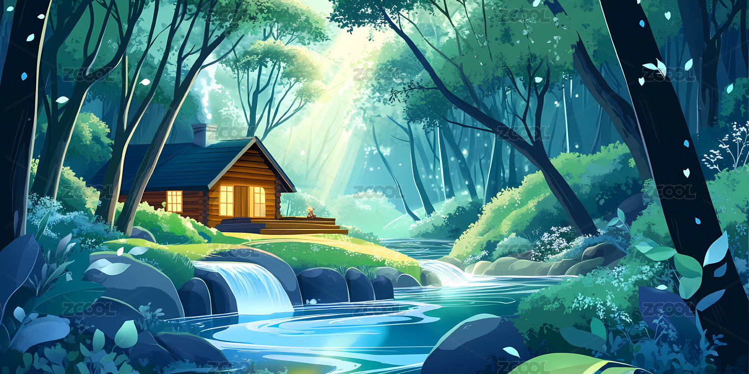 林间小屋与溪流