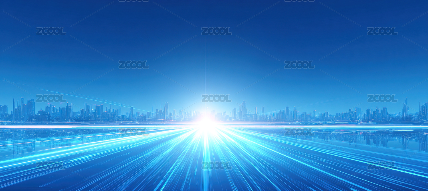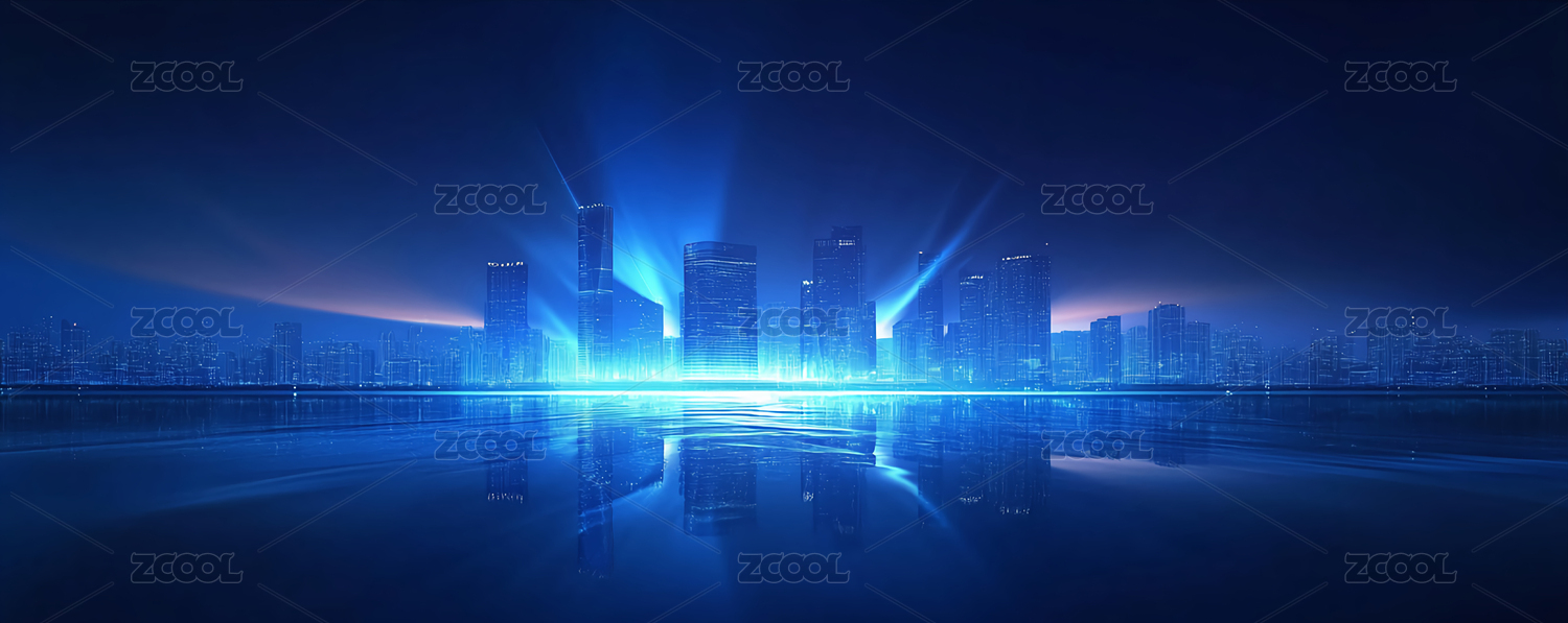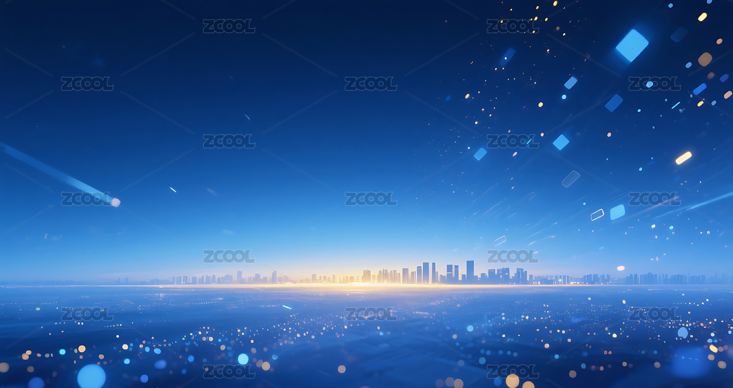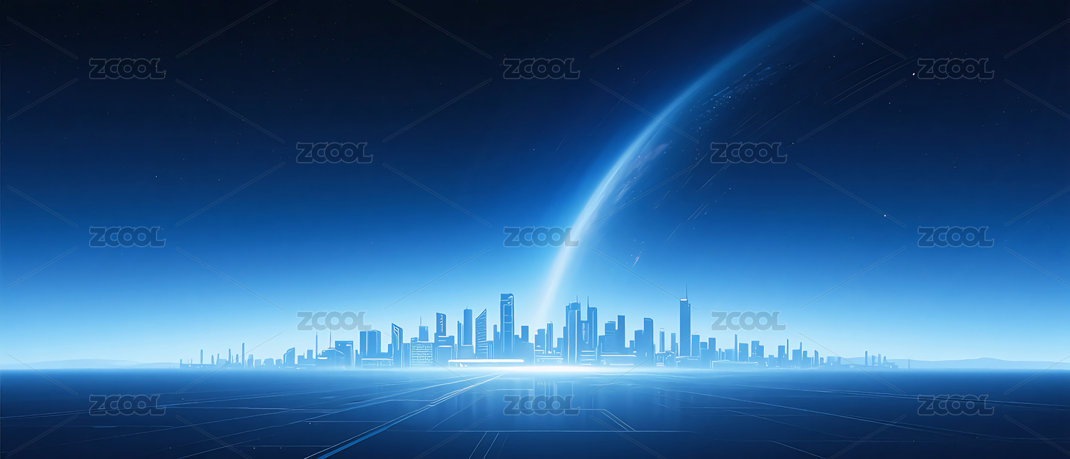 蓝色商务科技天际线主视觉背景