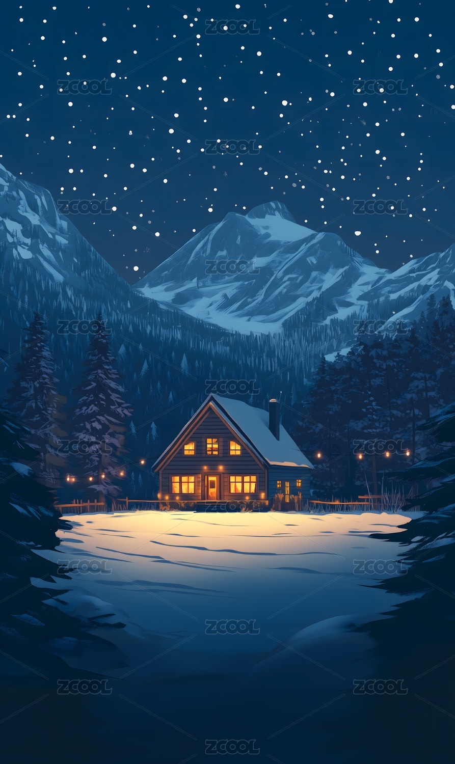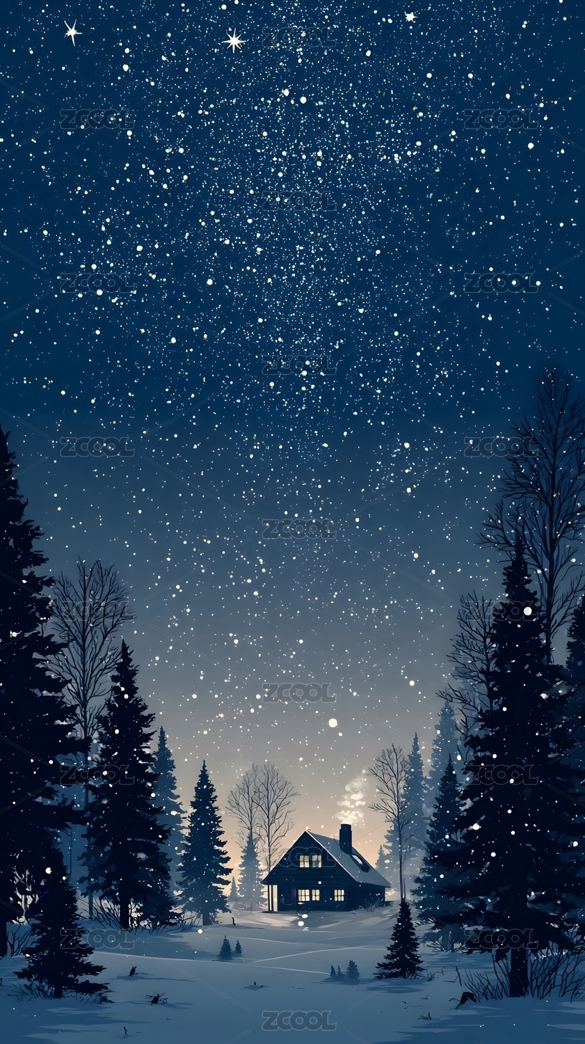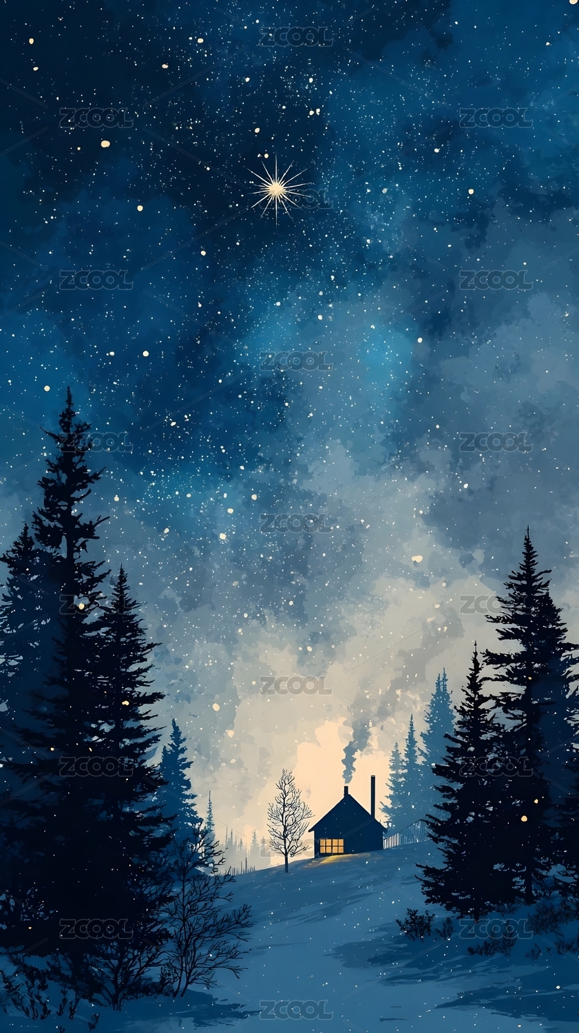 自然,天空,雪地,风景,雪景,森林,松树,窗户,冬天,夜晚