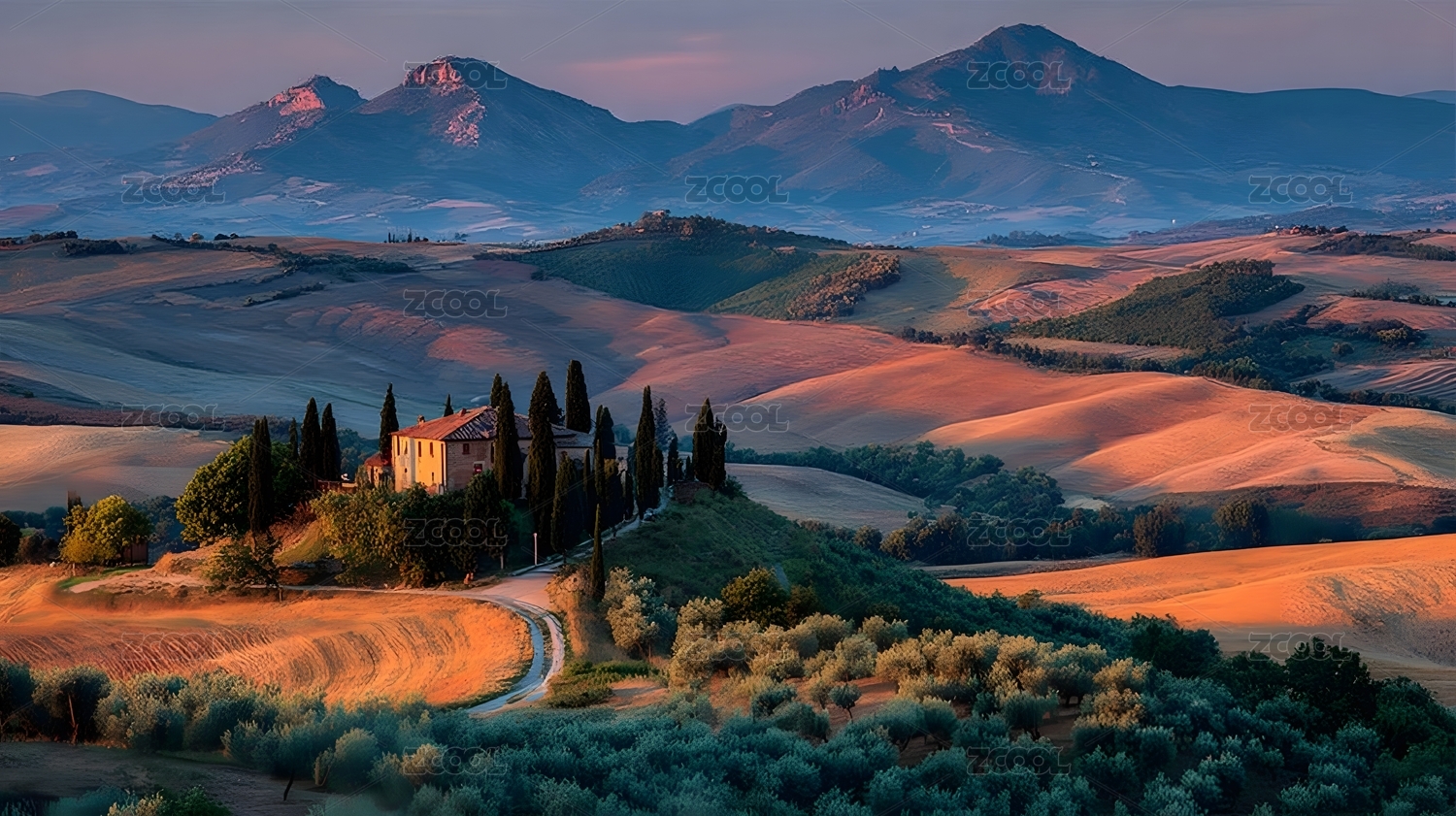 意大利托斯卡纳奥尔恰谷农庄田园日出风景