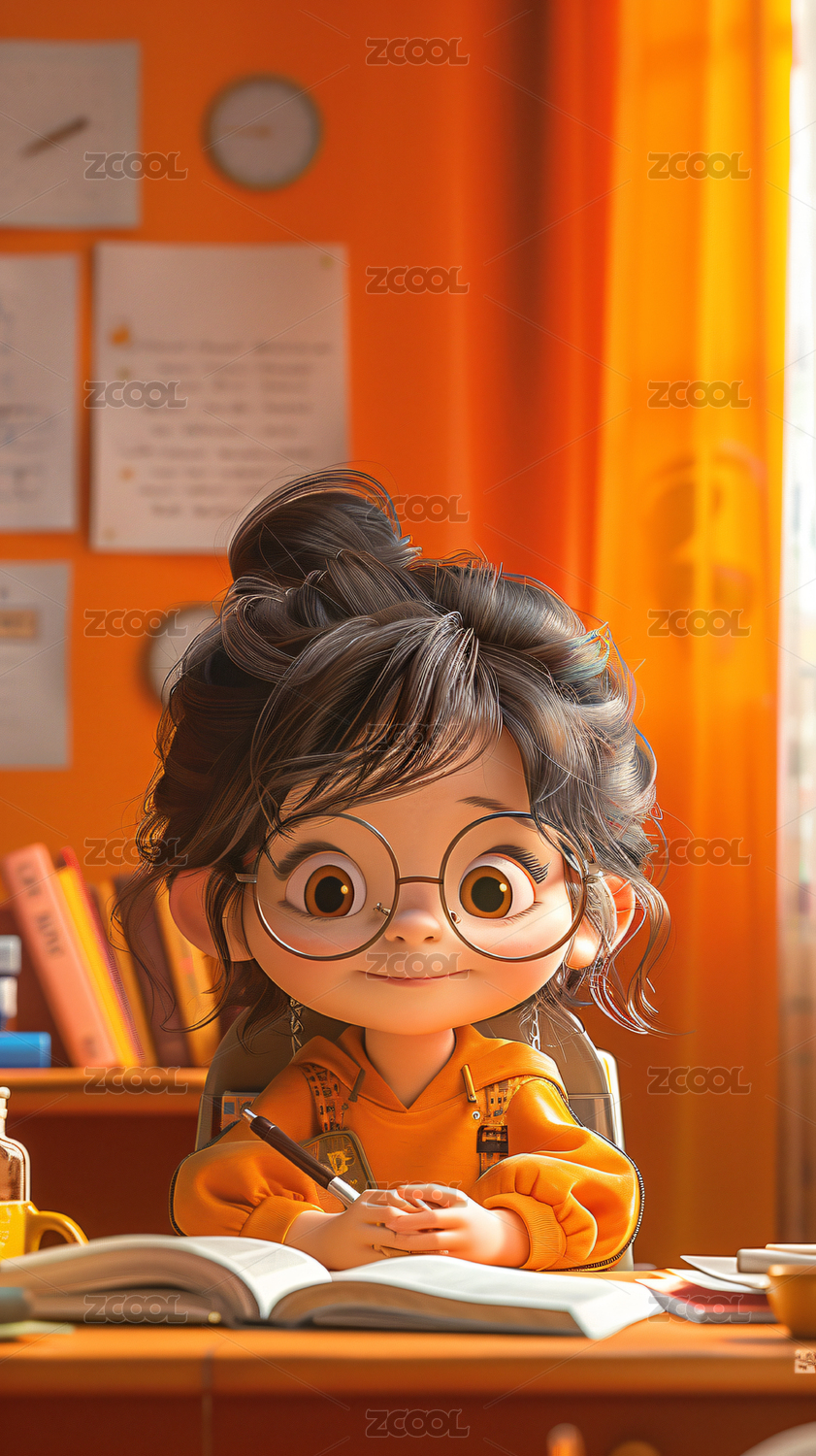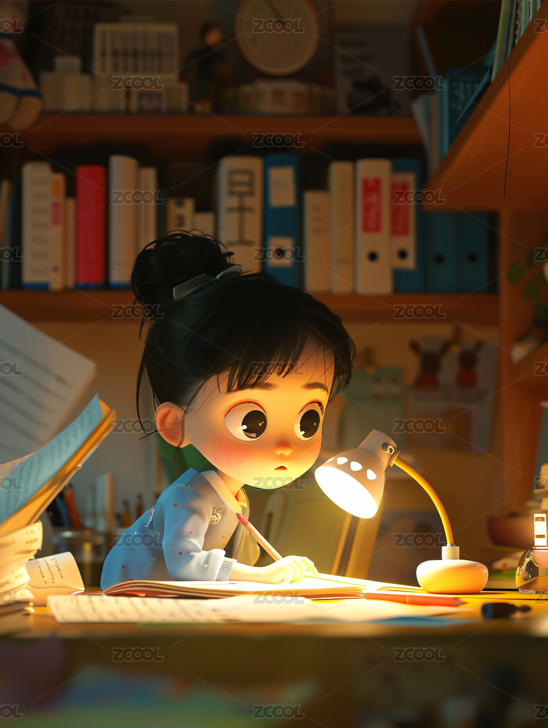 学生深夜开着台灯学习复习高考奋战3D渲染