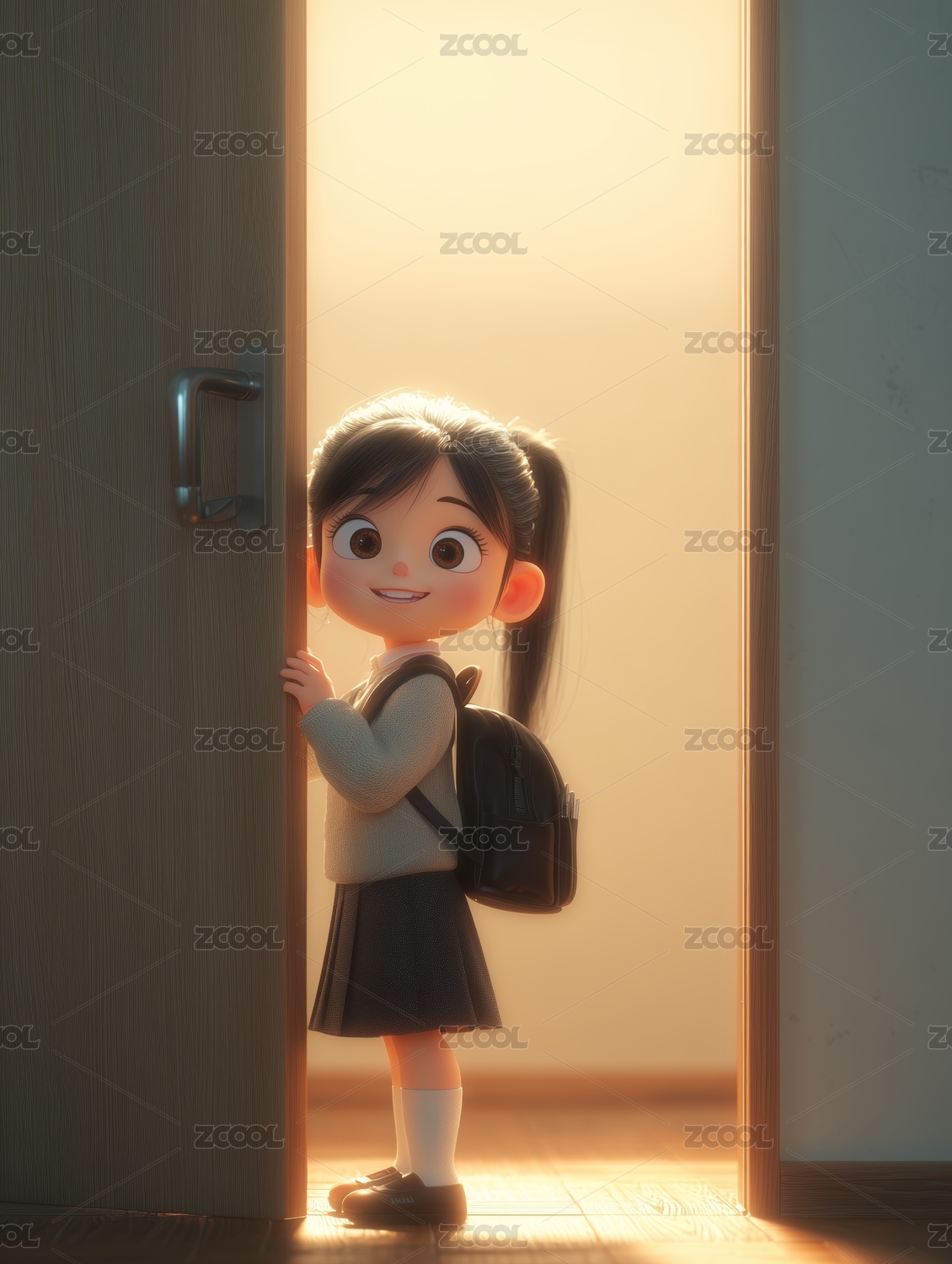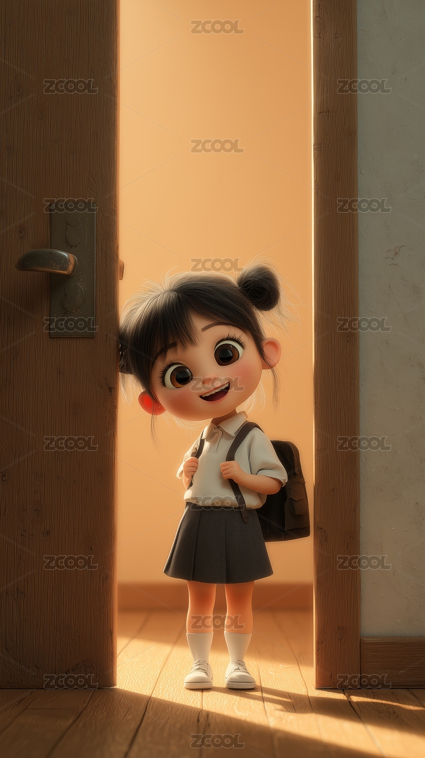 夏天室外可爱大眼睛微笑小女孩3D卡通插画