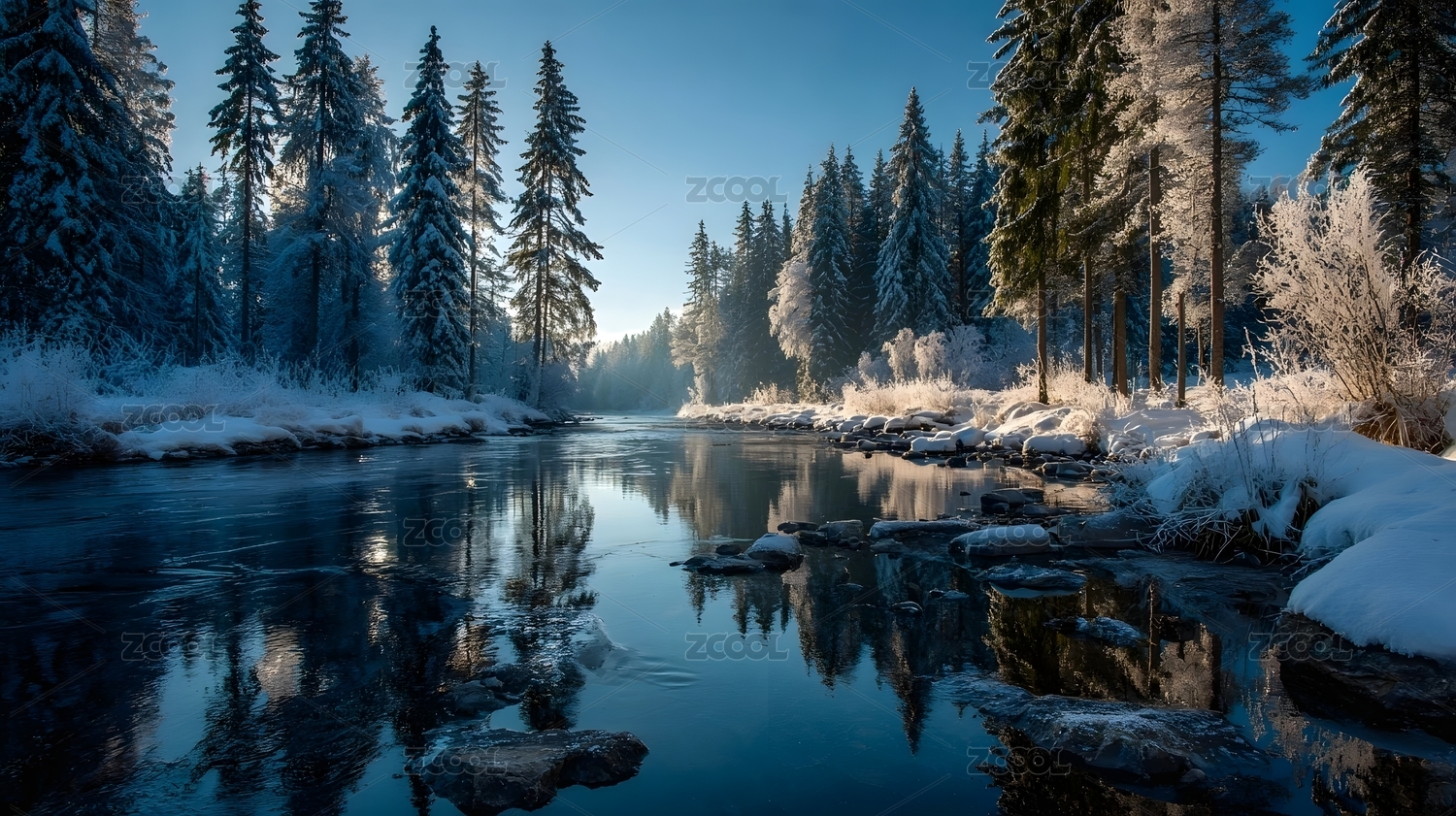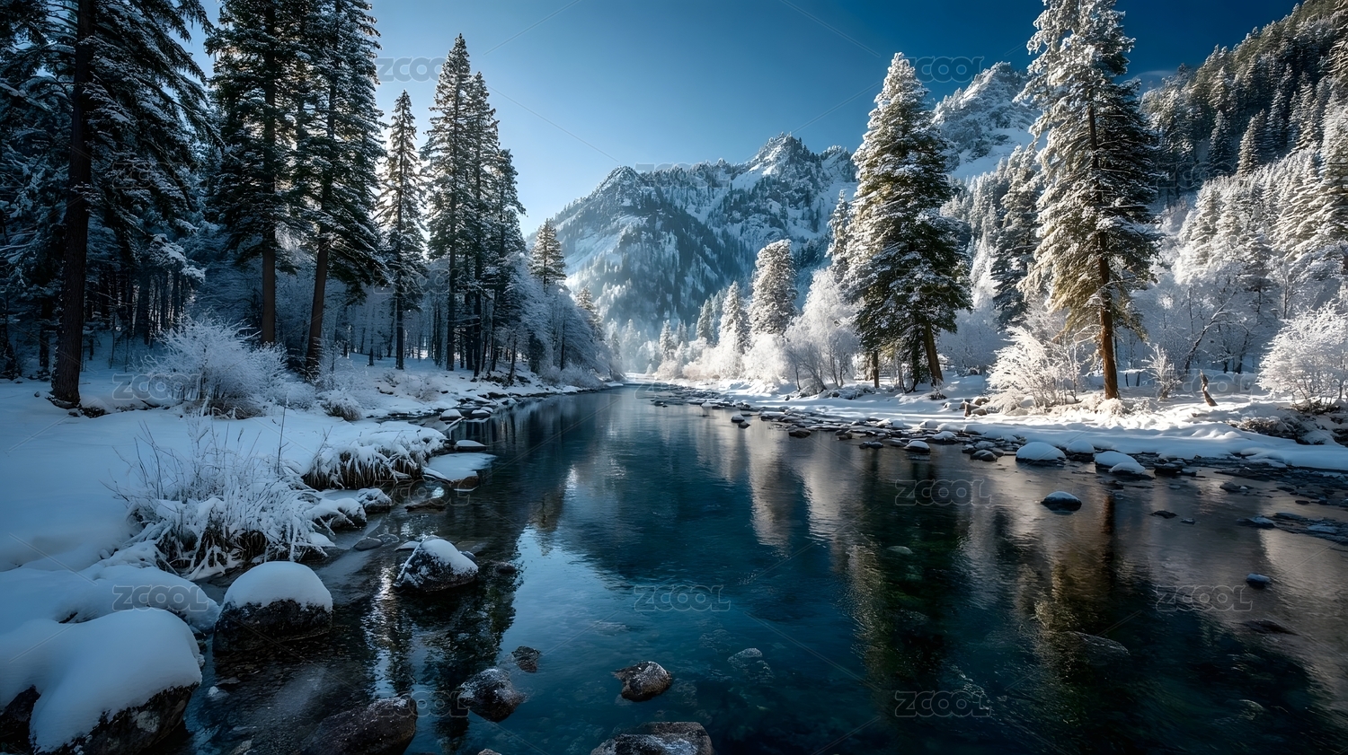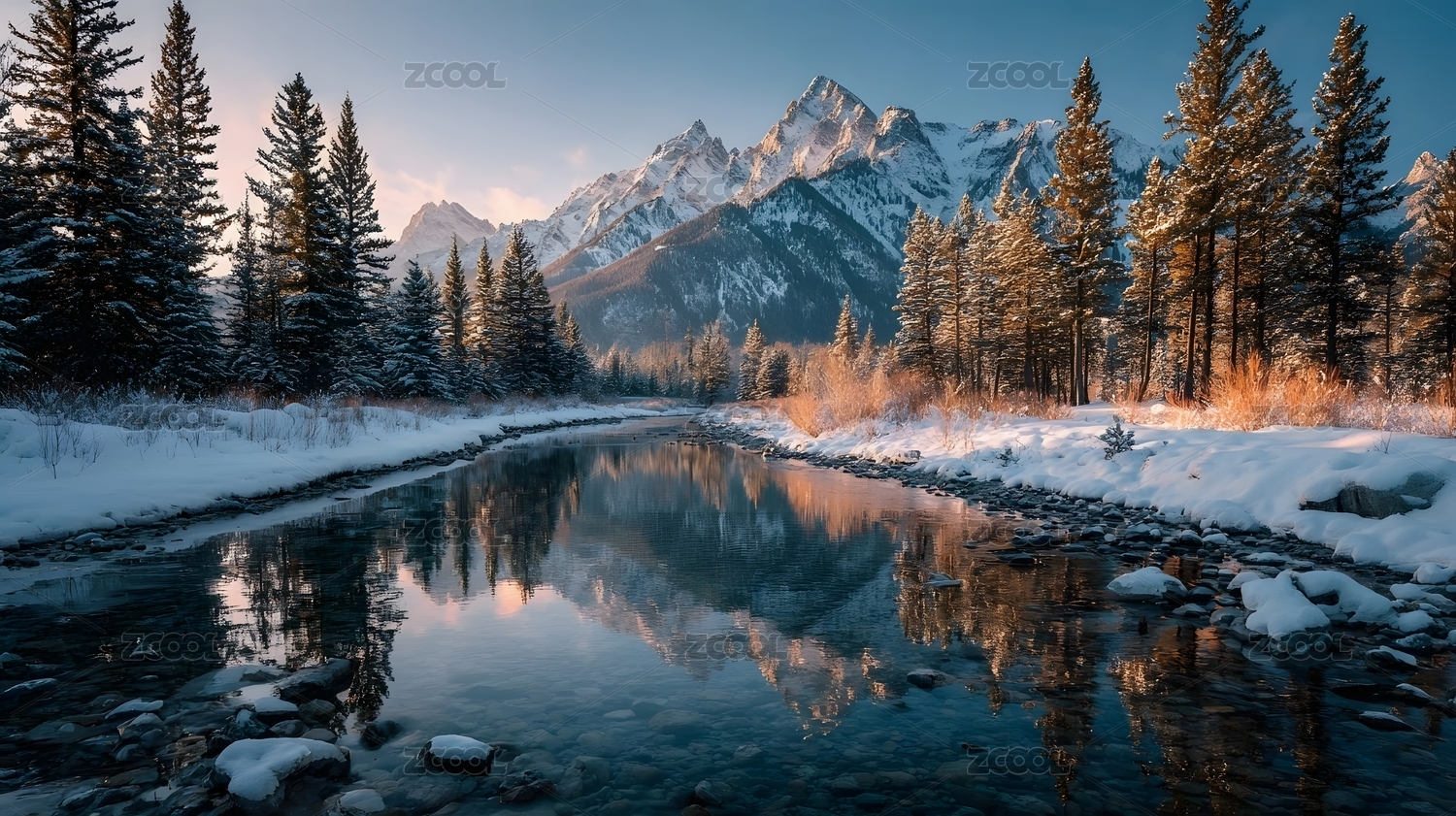 自然,风景,倒影,树木,雪山,河流,森林,雪景,山脉,湖泊