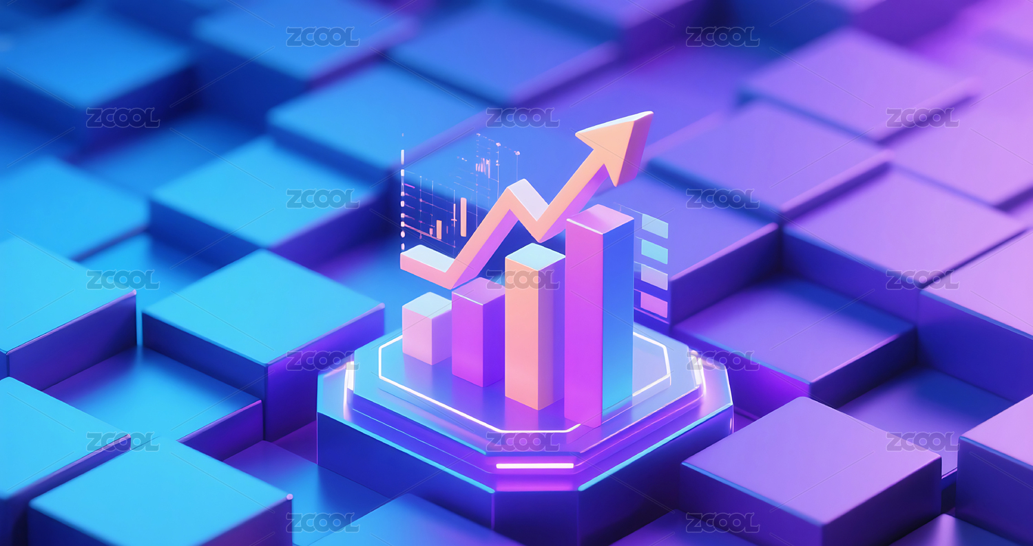 紫蓝色几何金融经济柱状图插画背景壁纸
