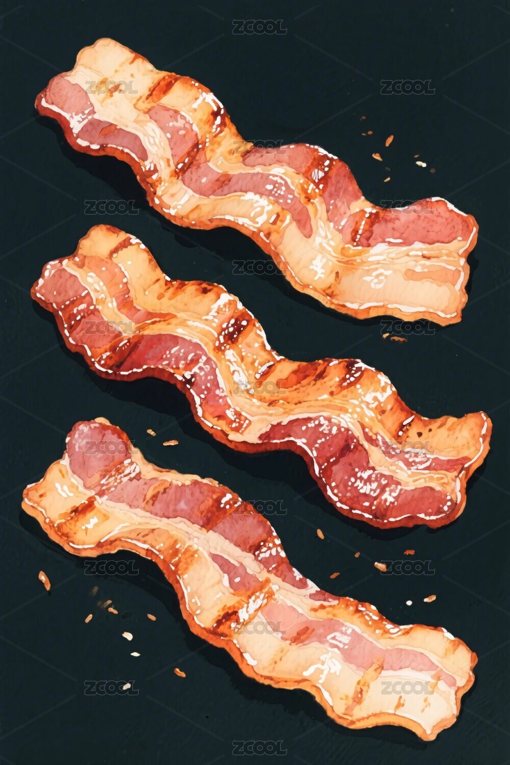 培根,烤肉,水彩画,插画,食物,肉类,煎培根,美食,烹饪,食材