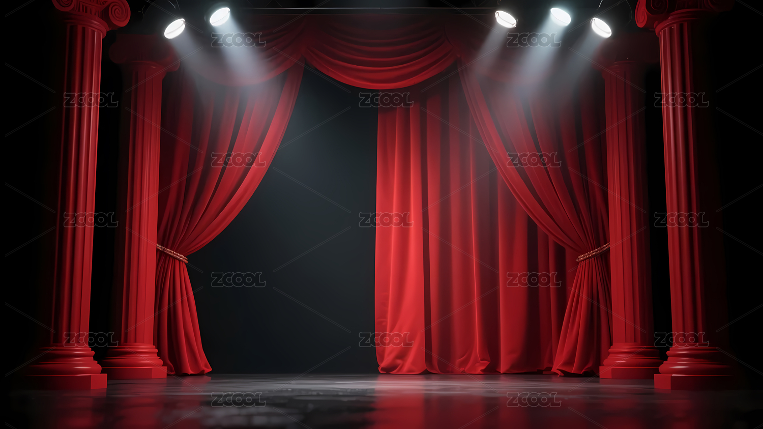 红色舞台背景与金色柱子