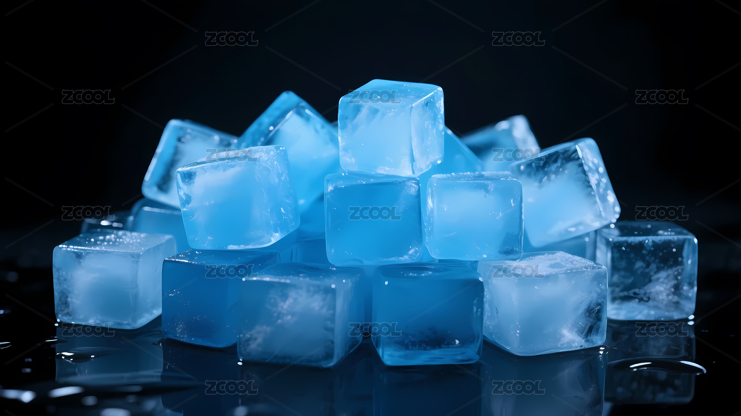 深色背景蓝色冰块