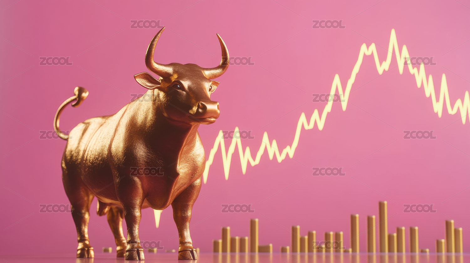 背景,金色,红色,牛,雕像,图表,波动,柱状物,金币,环绕
