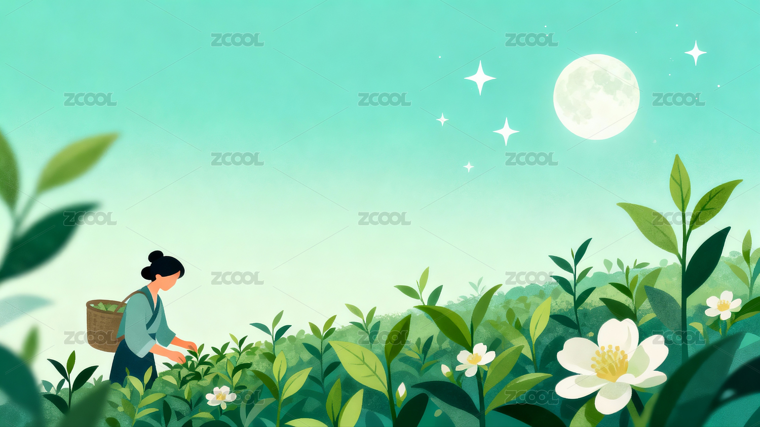 月下采茶的女子