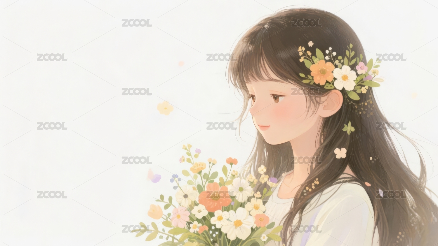 自然,少女,清新,蓝天,白云,花瓣,春风,微笑,花海