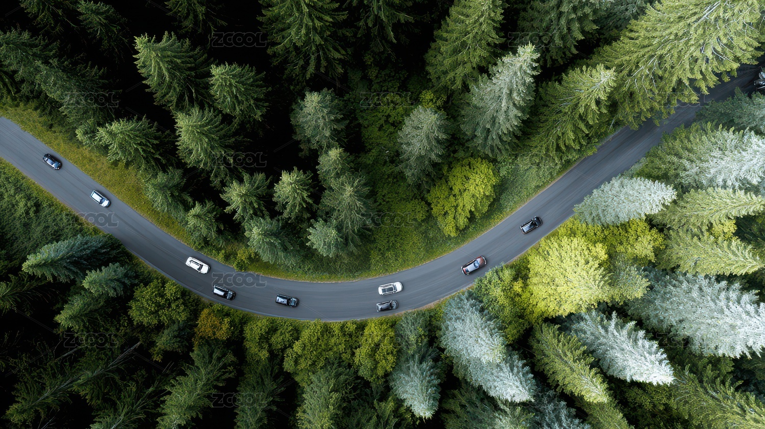 道路,树木,绿色,森林,车辆,交通,俯瞰,弯曲