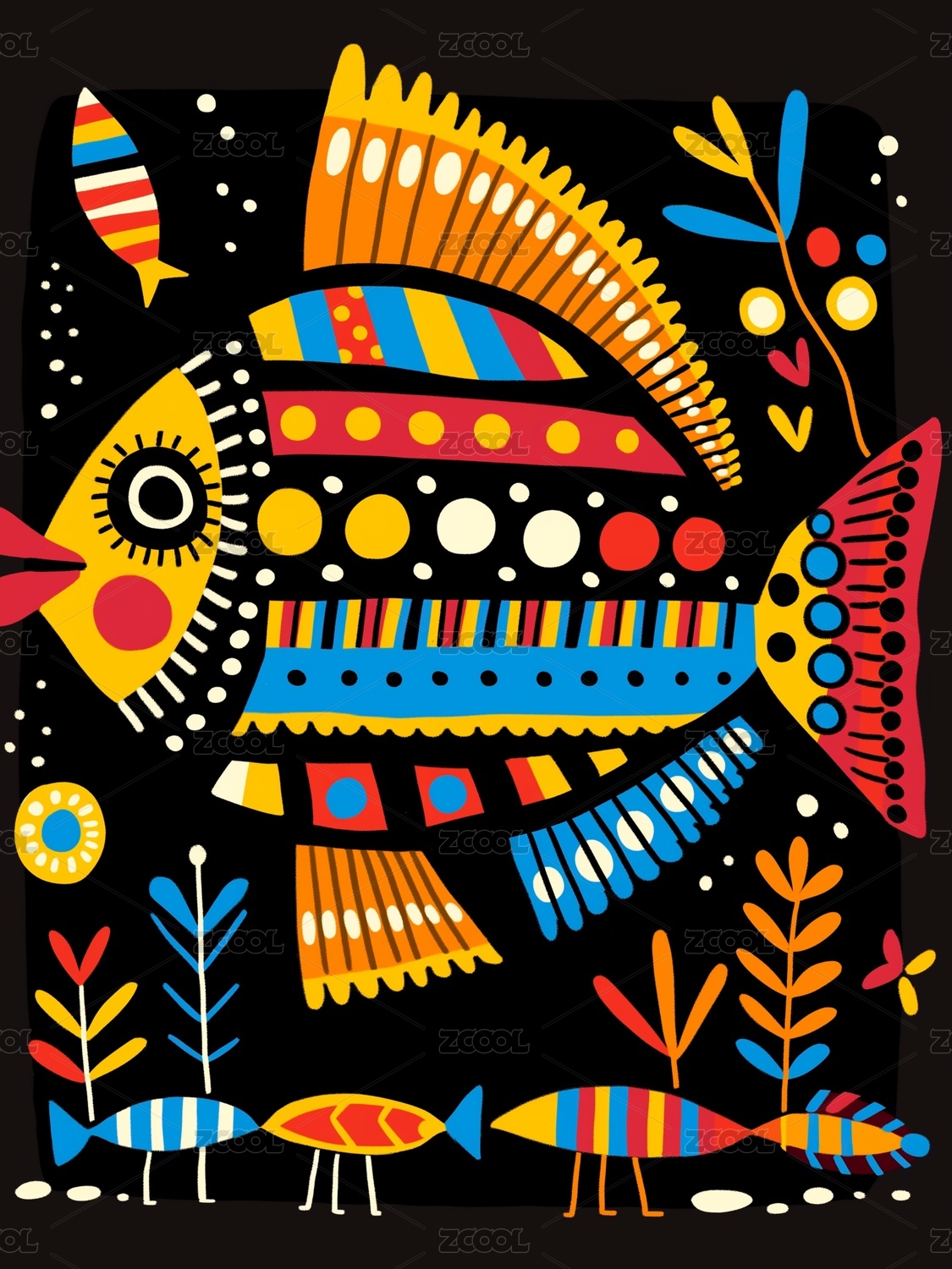 海洋,插画,艺术,抽象,几何,装饰,色彩,背景,海洋生物,艺术风格